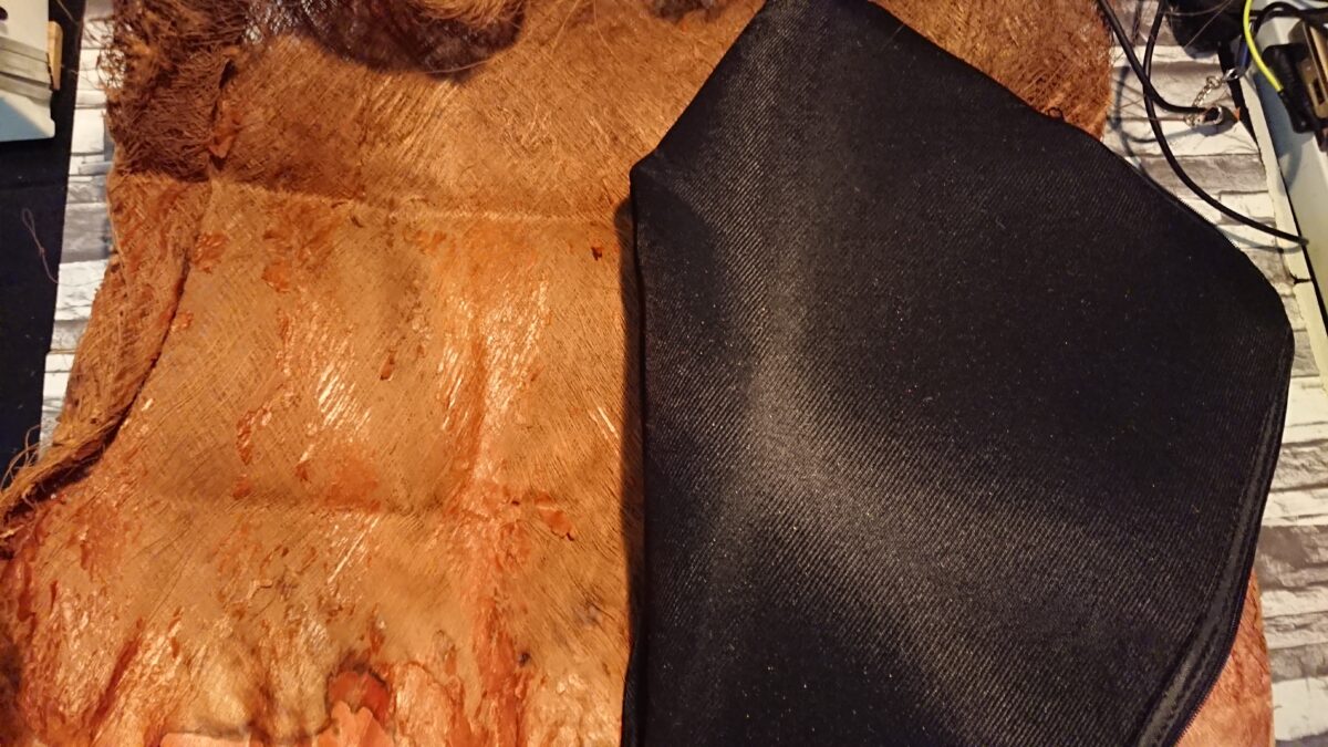 PCケースを仕込んだことでジッパー式になってしまった。実質ウルトラ怪獣の着ぐるみだ なお、私はあたまがでかくて閉まらない。なんでや。