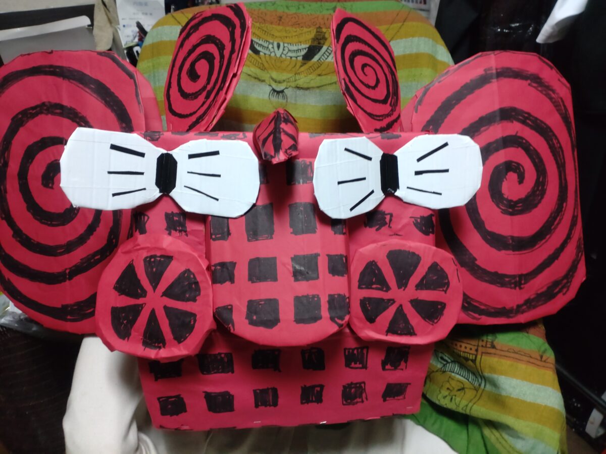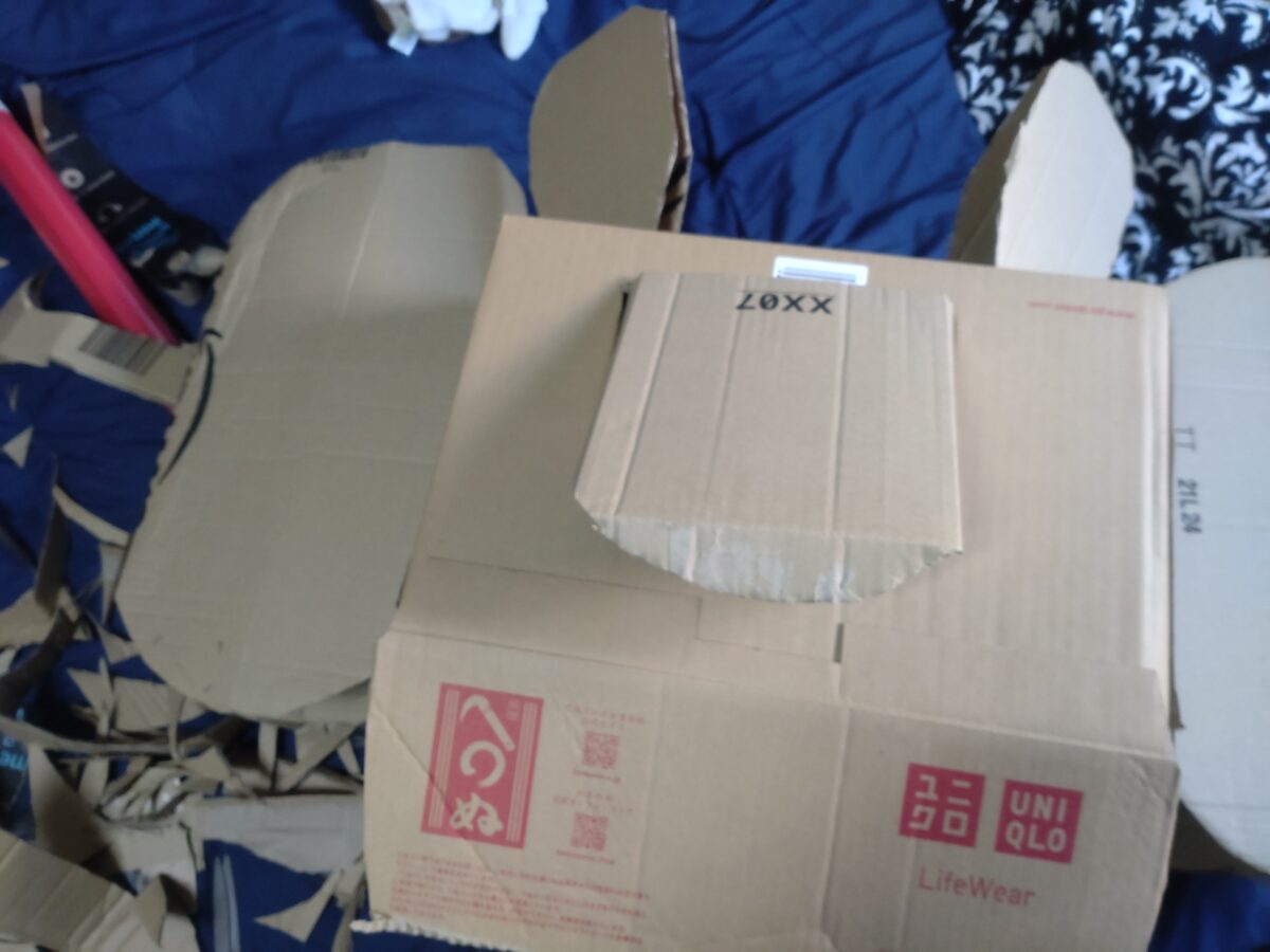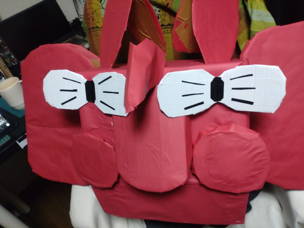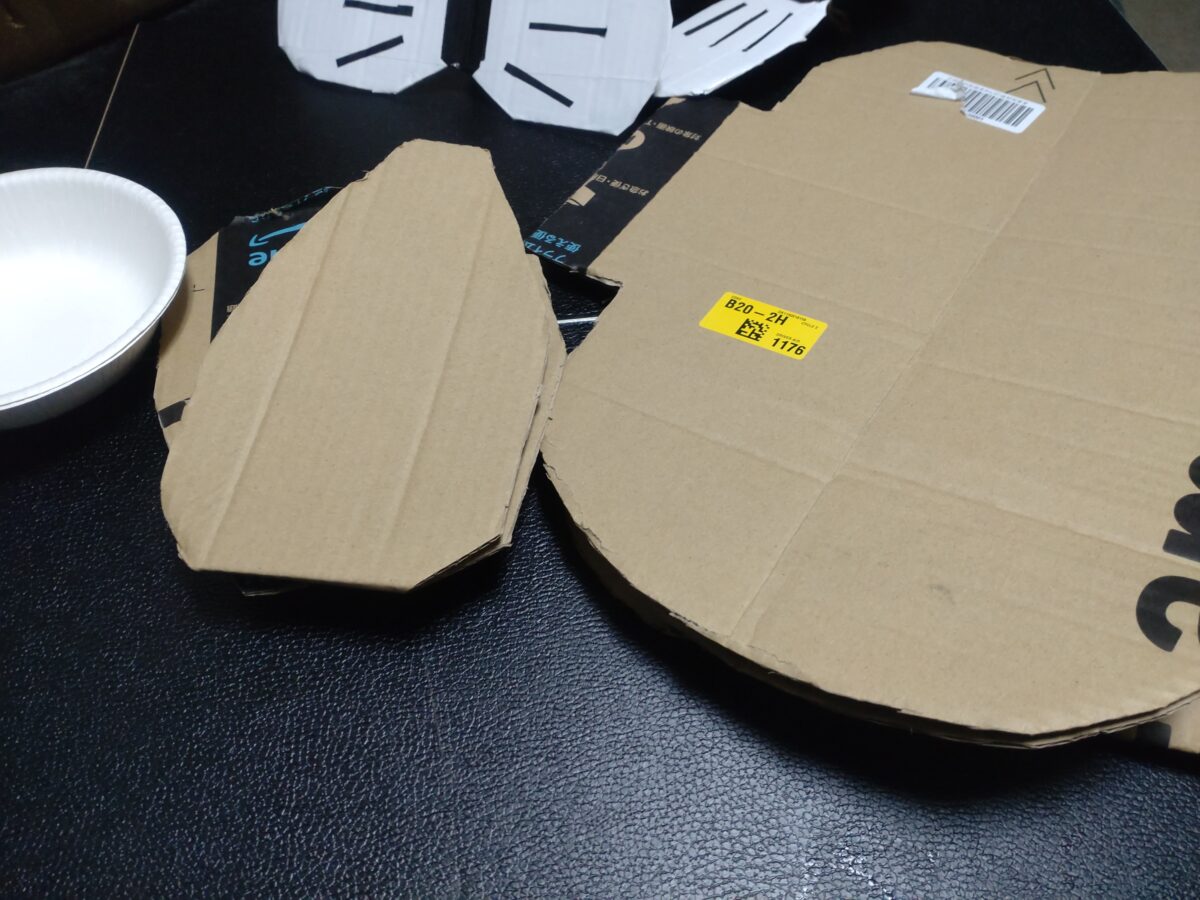 このキャラめいた全体的なボリューム感に何よりも頭を抱えてしまう。とりあえず段ボール組み合わせてフォルムを整理していこう。