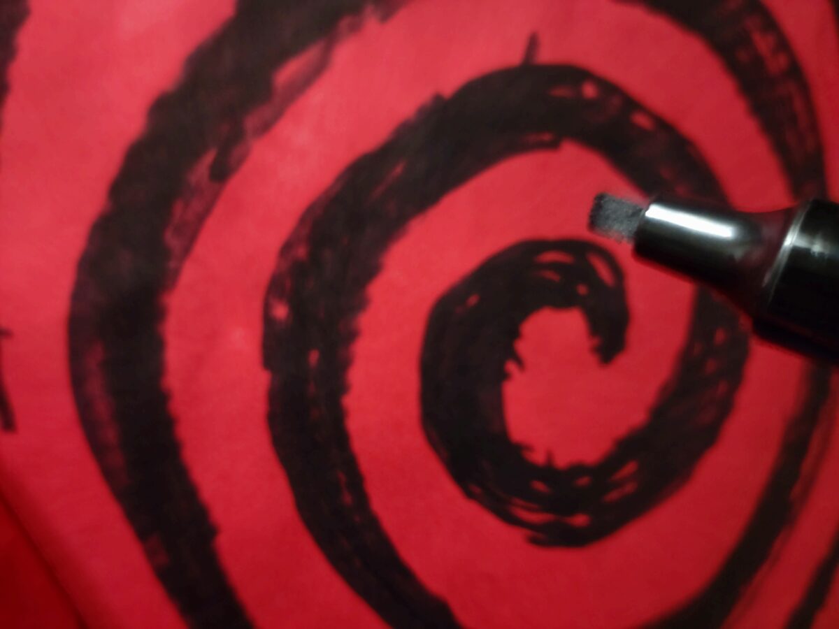 しっかり乾かしたら、画像とにらめっこしながら呪術的文様をフリーハンドで入れていく。