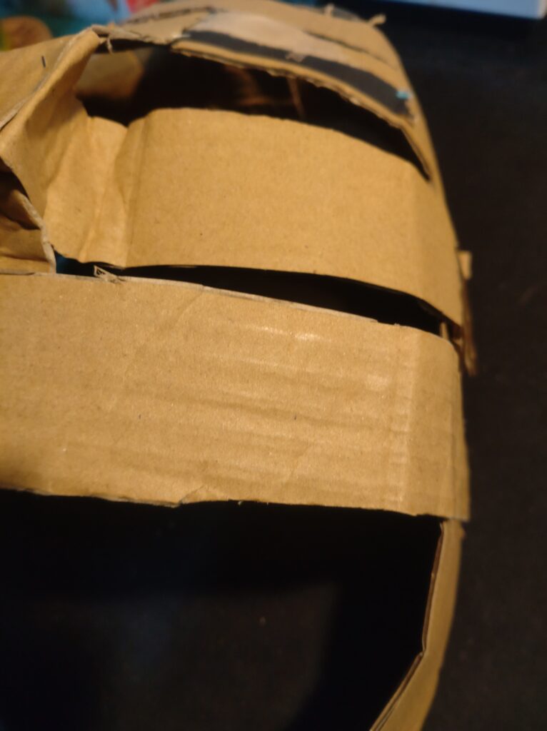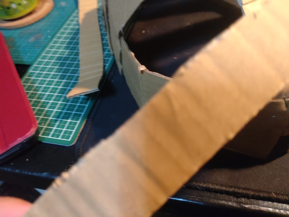 段ボールを何本か短冊状に切り出し、わっぱめしの弁当箱をなんとなく思い描きながら曲げていく。