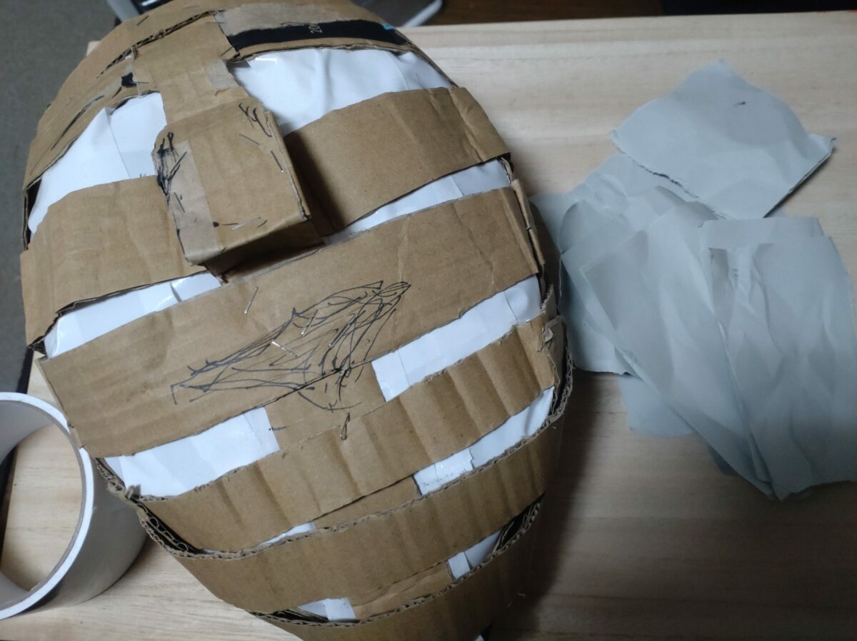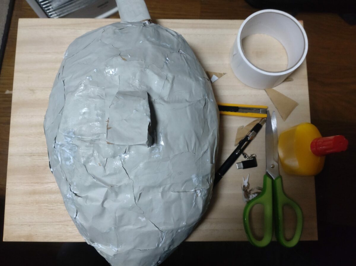 簡易的な張り子ができる。ボンドは惜しまずガンガン使うのがコツ。(刷毛とかあるとラク)