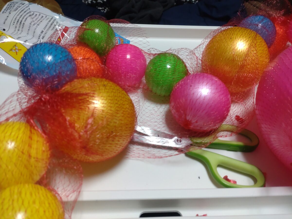 創作意欲がバチバチに刺激されたので、勢いで複数サイズのゴムボールと、みかんネットを購入(Amazon+百均で計¥1,000位)