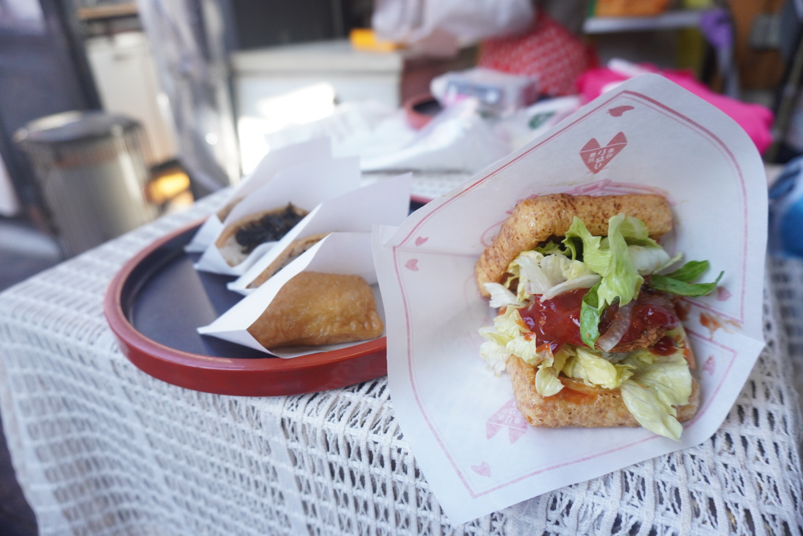 稲荷寿司にもバリエーションがあるのを知っていましたか? 「おきつね本舗」では、食べ比べ選手権で優勝経験をもつ「わさびいなり寿司」のほか、「五目いなり」「炙り五目いなり」「味噌カツいなり」をラインナップ。B級グルメの「おきつねバーガー」も要チェックです。