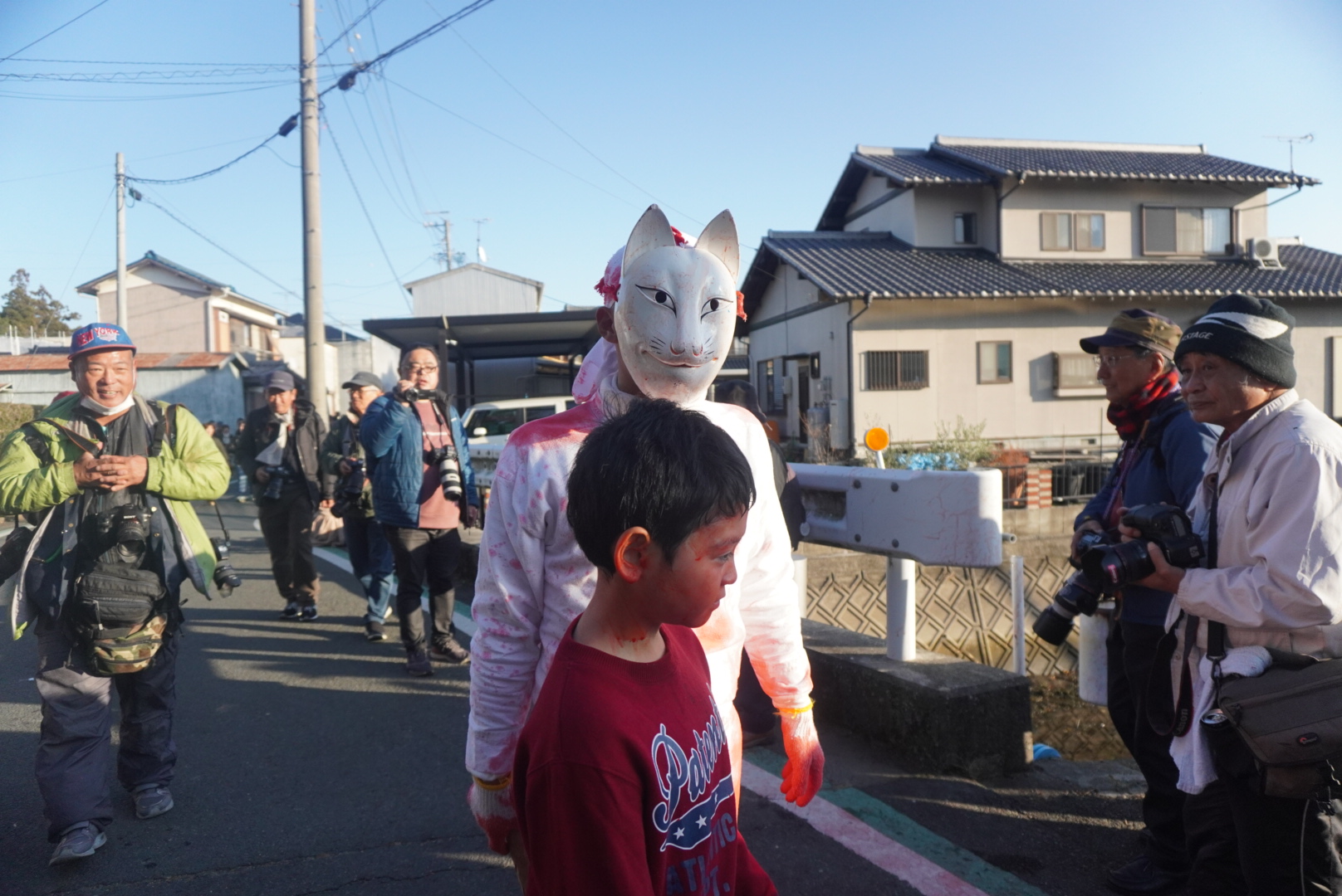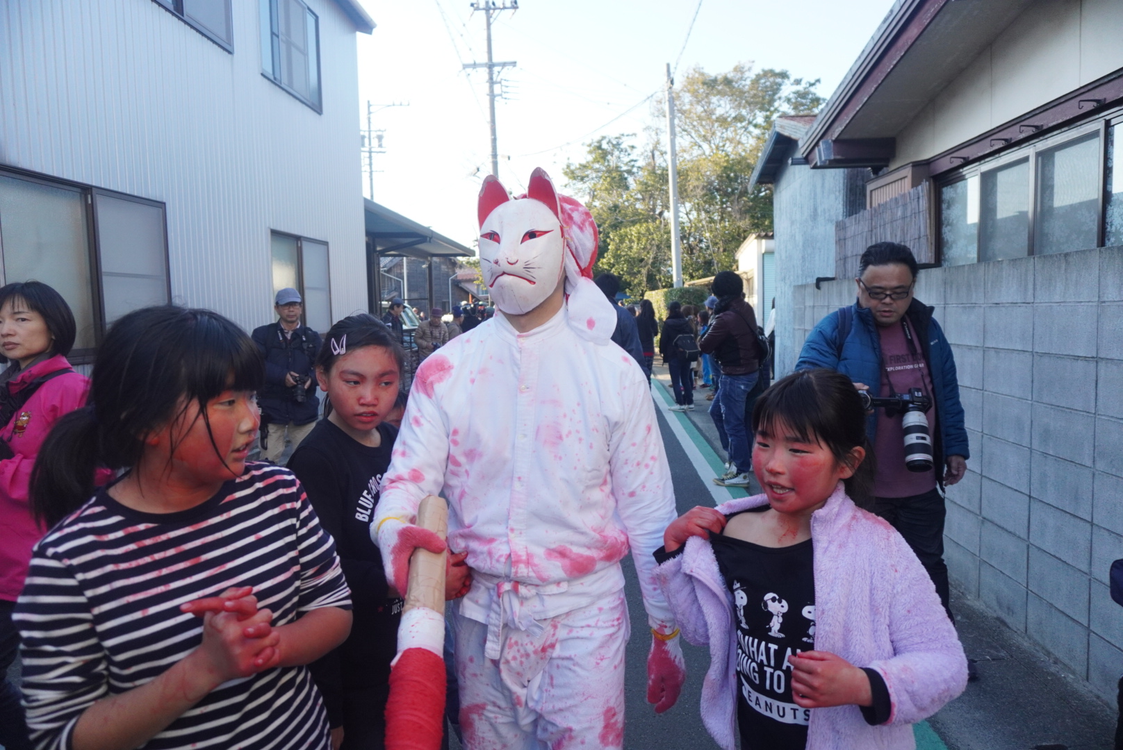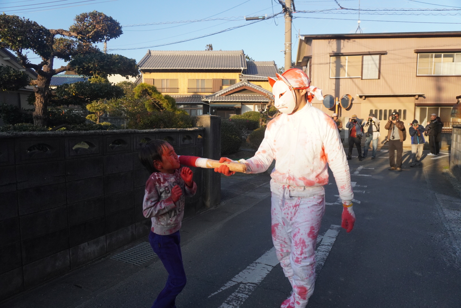 毎年12月第三日曜に開催される #どんき 祭りの動画、第二弾(総集編)です。狐面の男が木の棒(どんき)につけた食紅を子どもたち(時々大人)に塗ろうと追いかけ回すお祭りです。 pic.twitter.com/gORVZQzwSF
