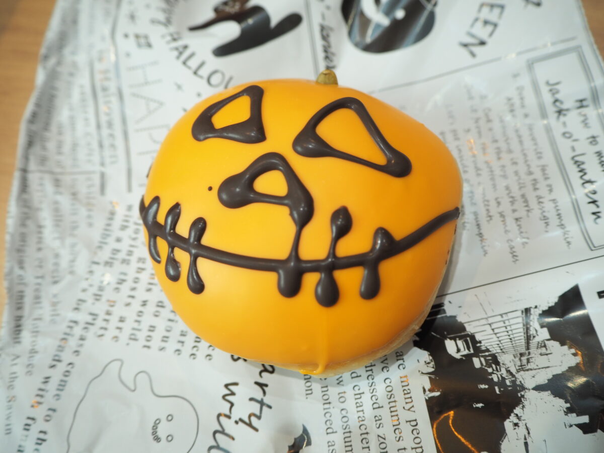 クリスピークリームドーナツの「パンプキン プリン ジャック」は、ハロウィンの定番ジャック・オー・ランタンを模ったドーナツ。カボチャらしい外側のコーティングチョコは、カボチャ味のチョコレートを使用。生地の中のクリームにも北海道産カボチャを使用すると言った、まさにカボチャ尽くしなドーナツ!
