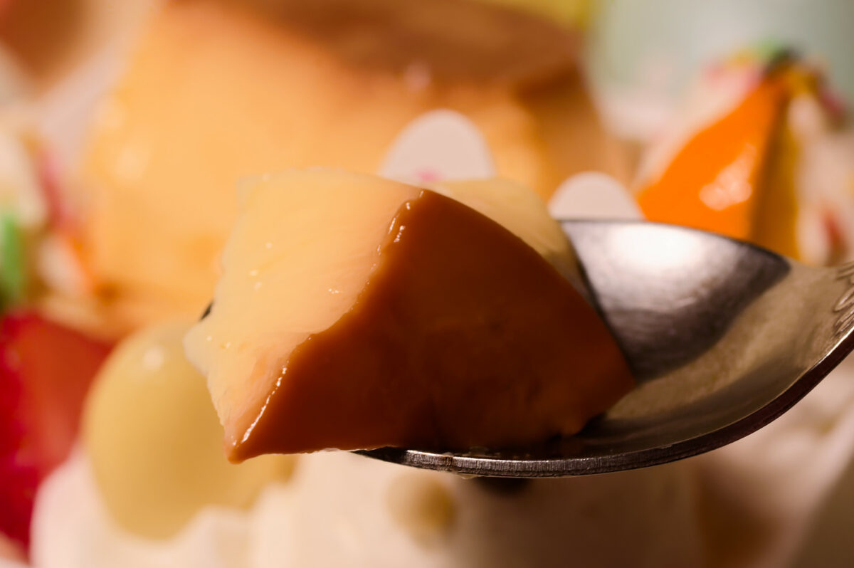 プリンは流行のなめらかプリンでなく、昔ながらの固めのプリン。カラメルが少なめなところが残念ですが、豊かな卵の香りとシンプルで懐かしい甘味を楽しむことができます。