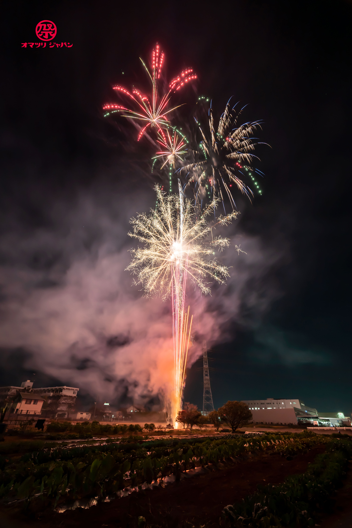 そして配信が終わる19時頃から市内の3カ所の小・中学校から、今回は市街地で距離が取れないのもあって最大2.5号(開花直径約60m)の花火が打ち上がりました。近隣の人達には告知済みなのである程度の人達は外に見に来ていましたが、突然の轟音に子供がびっくりして泣いてしまったりと…笑。確かにかなり近距離からの打ち上げだったので仕方ないかも。ゴメンね。