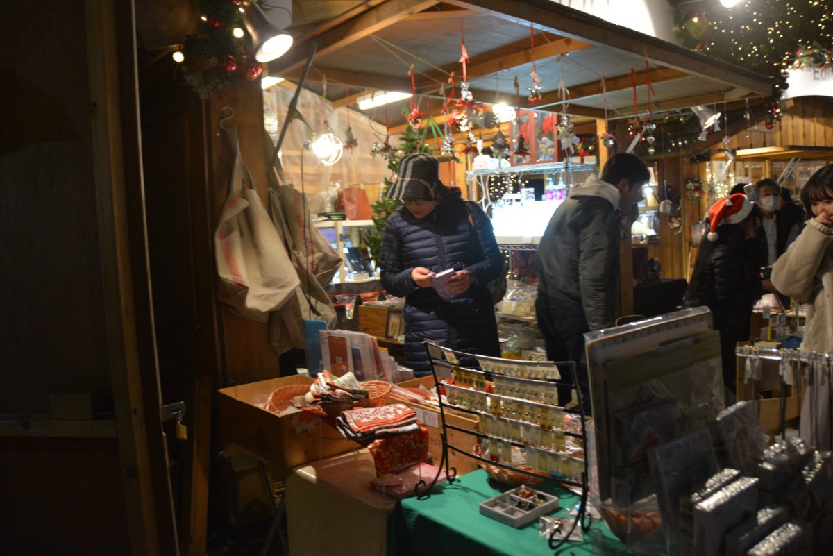 ヨーロッパのクリスマスマーケットを思わせるヒュテが並ぶマルシェ