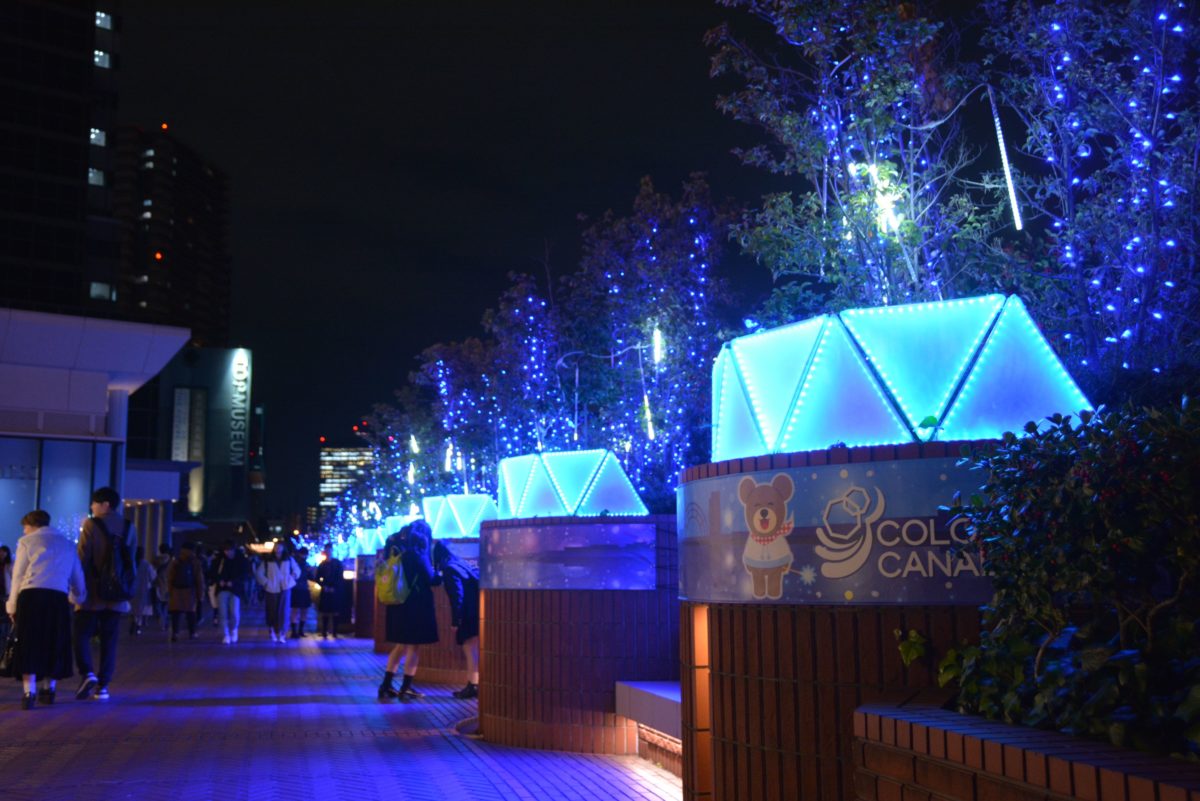 時計広場から南に坂道のプロムナードが繋がります。約10万球のランプがエリア全体をシャンパンゴールドに染め上げます。
