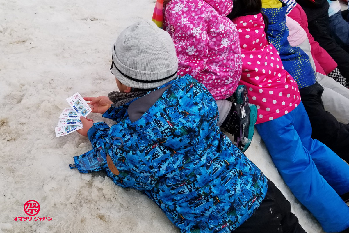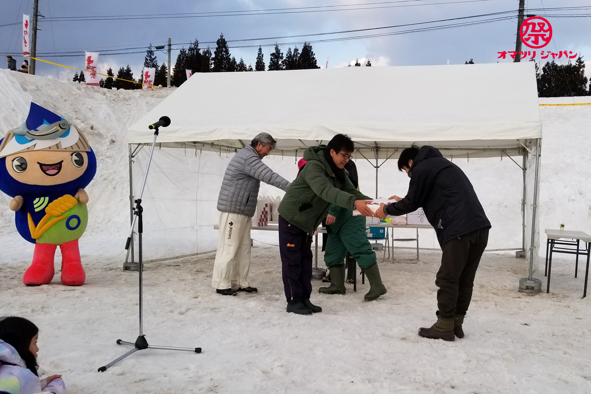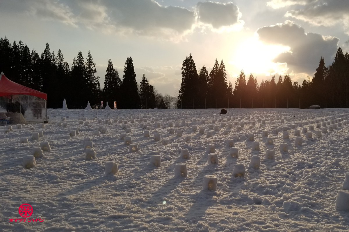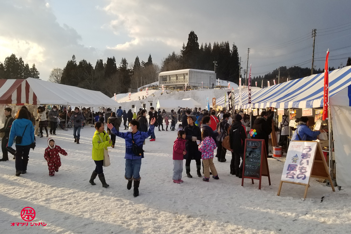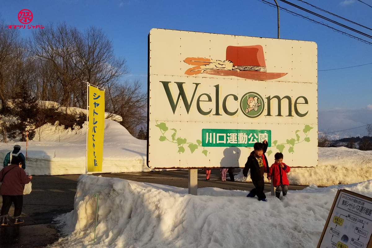 お祭り会場は川口運動公園になります。今年は特に雪が少ない長岡市ですが会場内は一面の雪景色なので長靴必須でした。場所によっては雪が深い場所もあり、腰の近くまで埋まって自力で抜け出せなくなり、知人に助けて貰った事は内緒ですw