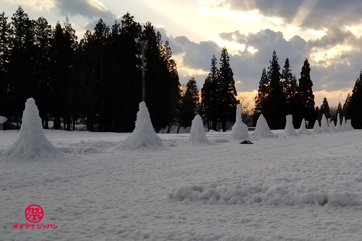 また、今回は長岡市内で用事があったので、到着が遅くなってしまいましたが、日中には5人1組で制限時間内に雪をひたすら積み上げて高さを競う雪積み合戦など様々なイベントが行われていた様です。これだけ見たら雪で作られたオブジェかなと思ってしまいますよね?