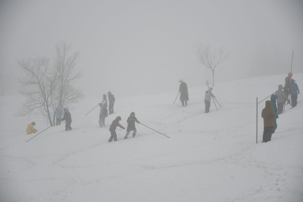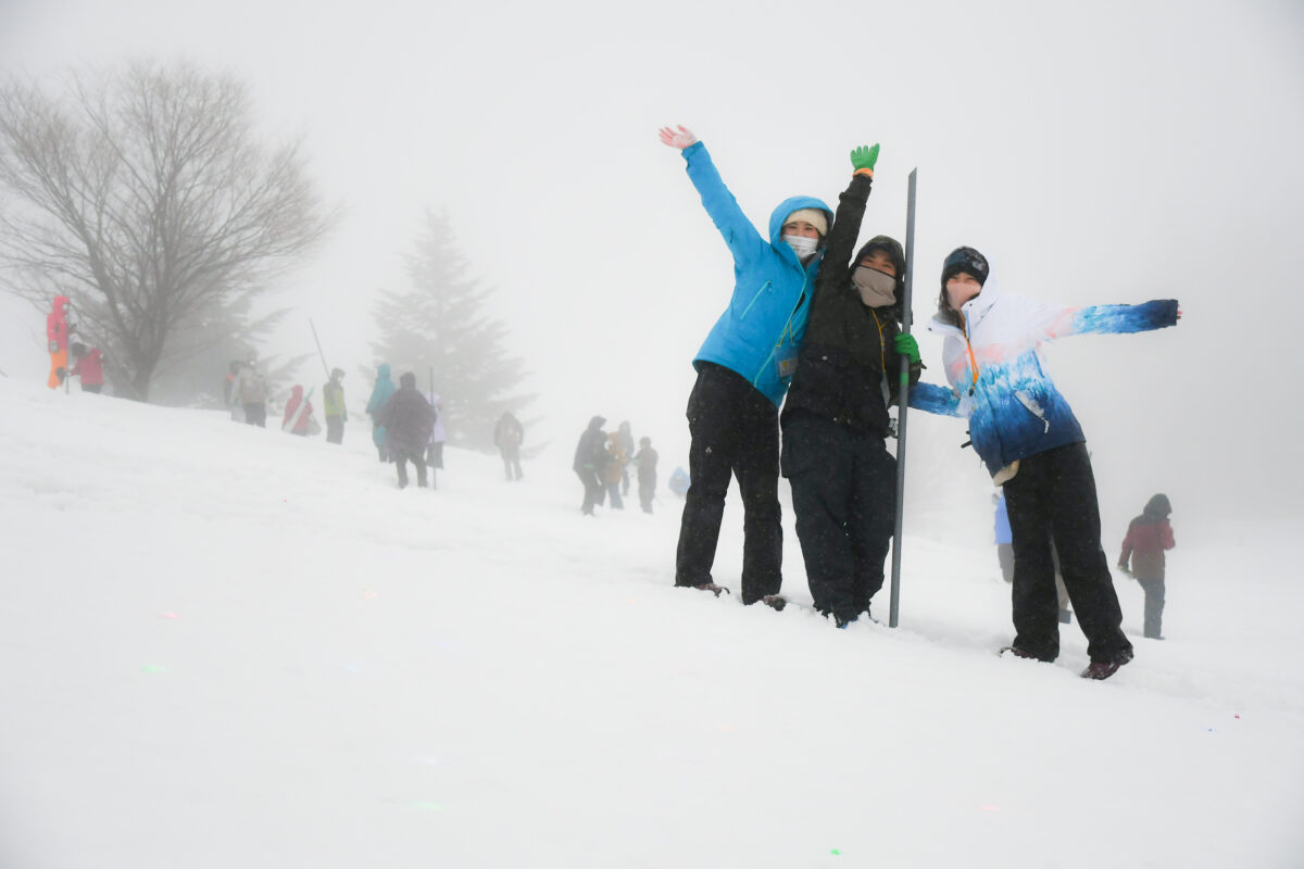 花火の打ち上げは、時間にしてわずかに10分間。それでも、オープニングの三尺玉、途中と締めの2発の二尺玉まで、会場に流れる音楽と連動したミュージックスターマインが切れ目なく物語を紡ぐ。雪と霧に覆われた視界のカラーを機敏に変化させていく花火が、光の花畑の背丈を中空にまで押し広げていった。