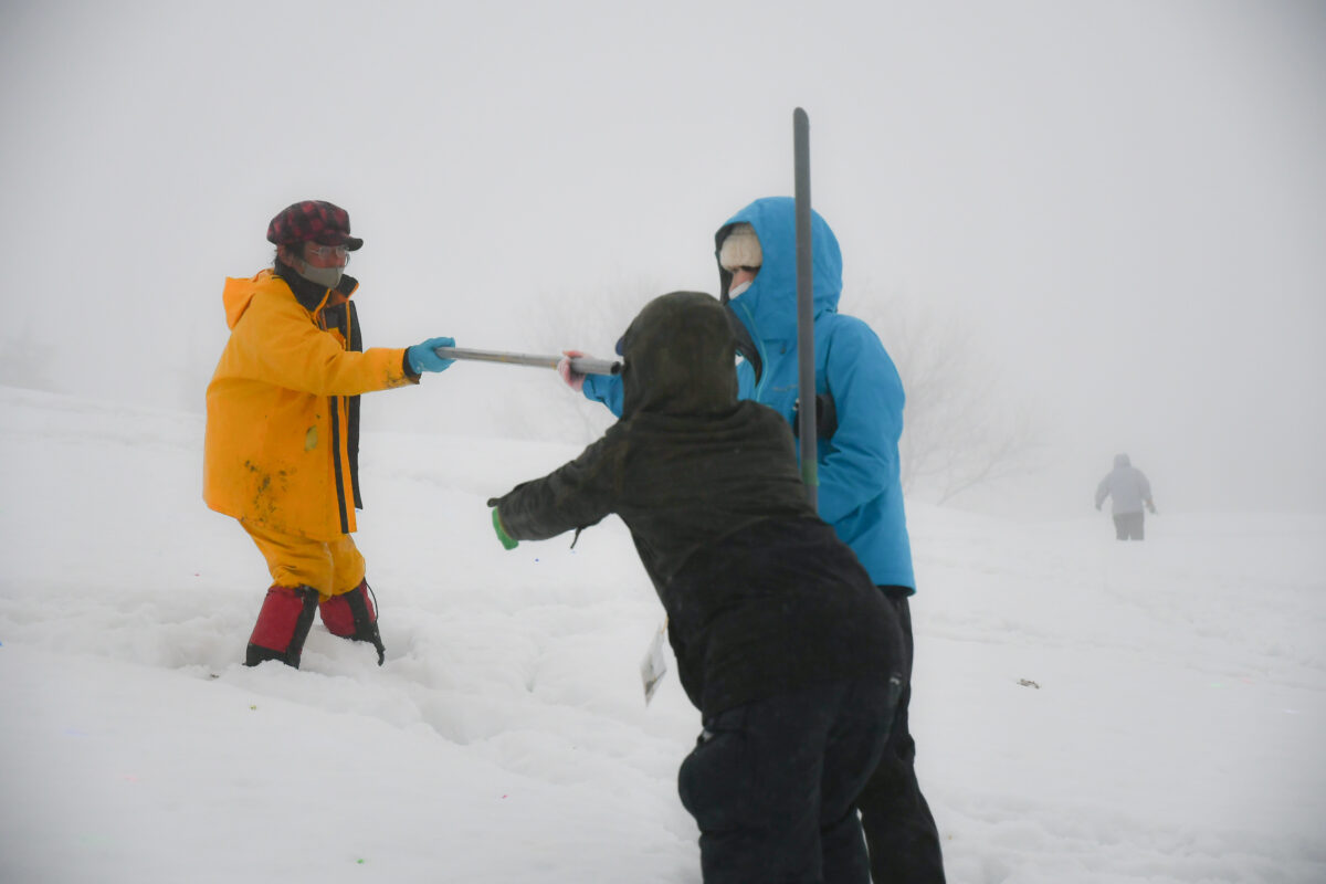 この作品にこんなにも感動したのには、もう一つ理由がある。実は私、当日の地元サポーターとして、無数のLED電球「光の種」を雪に植える作品づくりに参加させてもらったのでした。