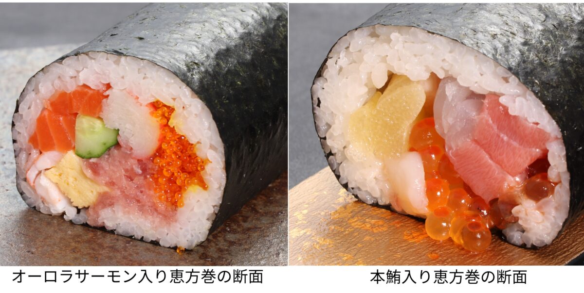 「生本鮪入り海鮮恵方巻」と「オーロラサーモンと熟成ネギトロ入り海鮮恵方巻」を味わう