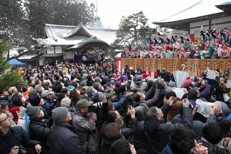 毎年、中尊寺本堂で厄男厄女による厄除開運を祈った豆まきが行われます。そして豪華景品が当たる福引抽選会も開催されます。