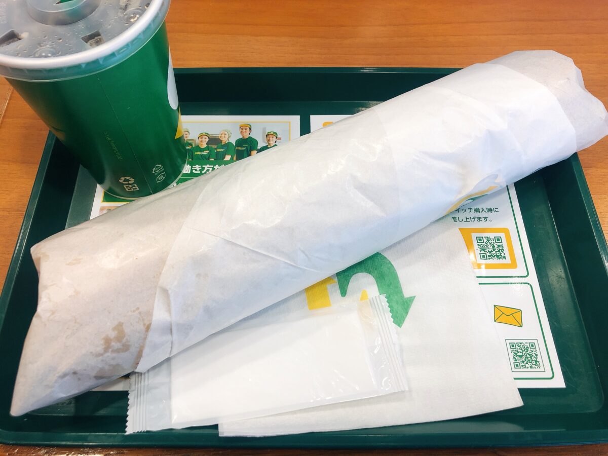 大好きなサブウェイを、通常の倍の長さで食べられる幸せ!目の前で作ってもらった野菜たっぷりのできたてサンドイッチにかぶりつき、とっても縁起がいい気持ちになれました。中は野菜がたっぷりなおかげか、意外に一本まるまる余裕で食べきることができました。