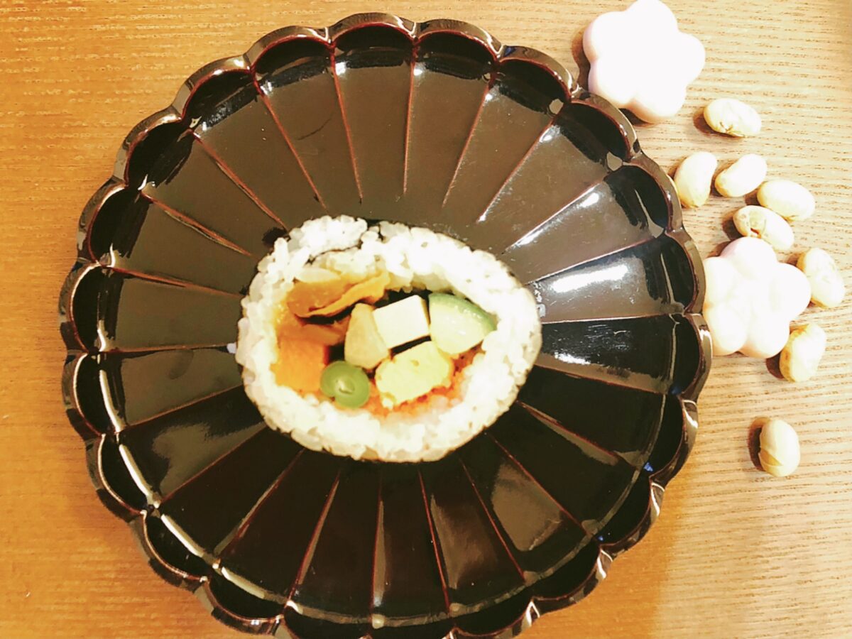 お!おいしい!!特に、ごぼうの風味が先程の福巻とのグレードアップ感を演出しています。いんげんの鮮やかなグリーンとサクサク感も効いています。あふれそうなほど具沢山なので、輪切りにするより、むしろ半分に切って2人でわけて、もぐもぐかぶりついた方が食べやすいかもしれません。海鮮具材が入っていなくても、大満足。