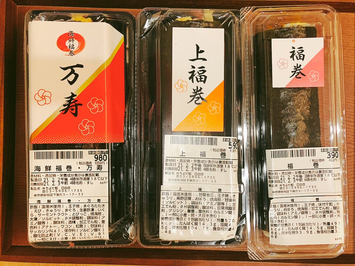 こちらの記事では、2021年節分のちよだ鮨の恵方巻「福巻」「上福巻」「海鮮福巻 万寿」