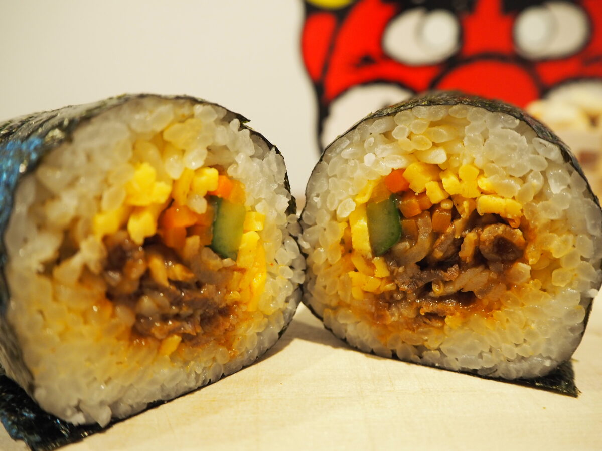・甘辛味付けで美味しいです。肉がちゃんと層になって入っていて存在感ありました。恵方巻?というか具も多いし普通に食事としていいですね!レンチンしてからでも美味しいかも。ちょっと高めの金額なのが惜しい。(30代男子・取締役)