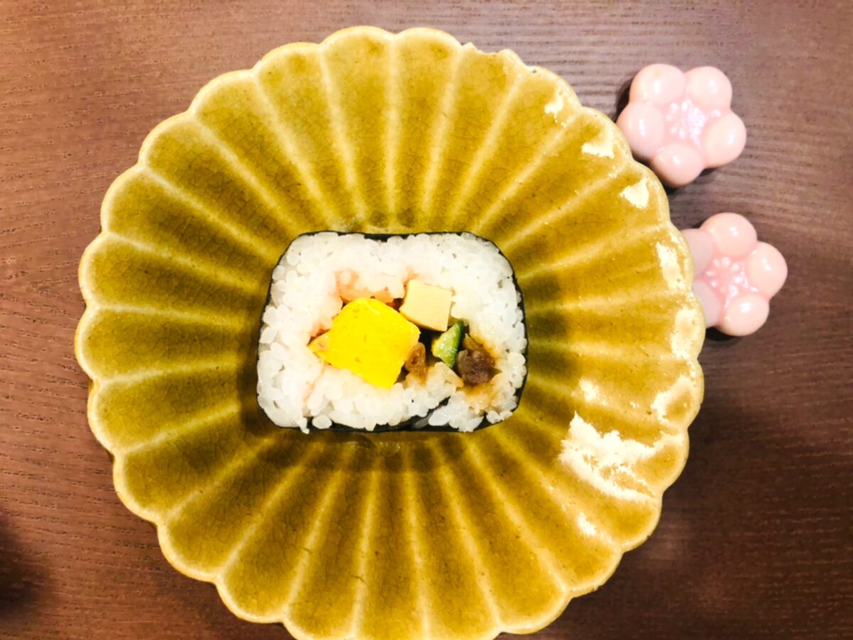 きゅうり、高野豆腐の甘さ、干瓢の甘さ、卵の甘さがバランスよく感じられて、個人的には実家のちらし寿司のような懐かしさを感じました。