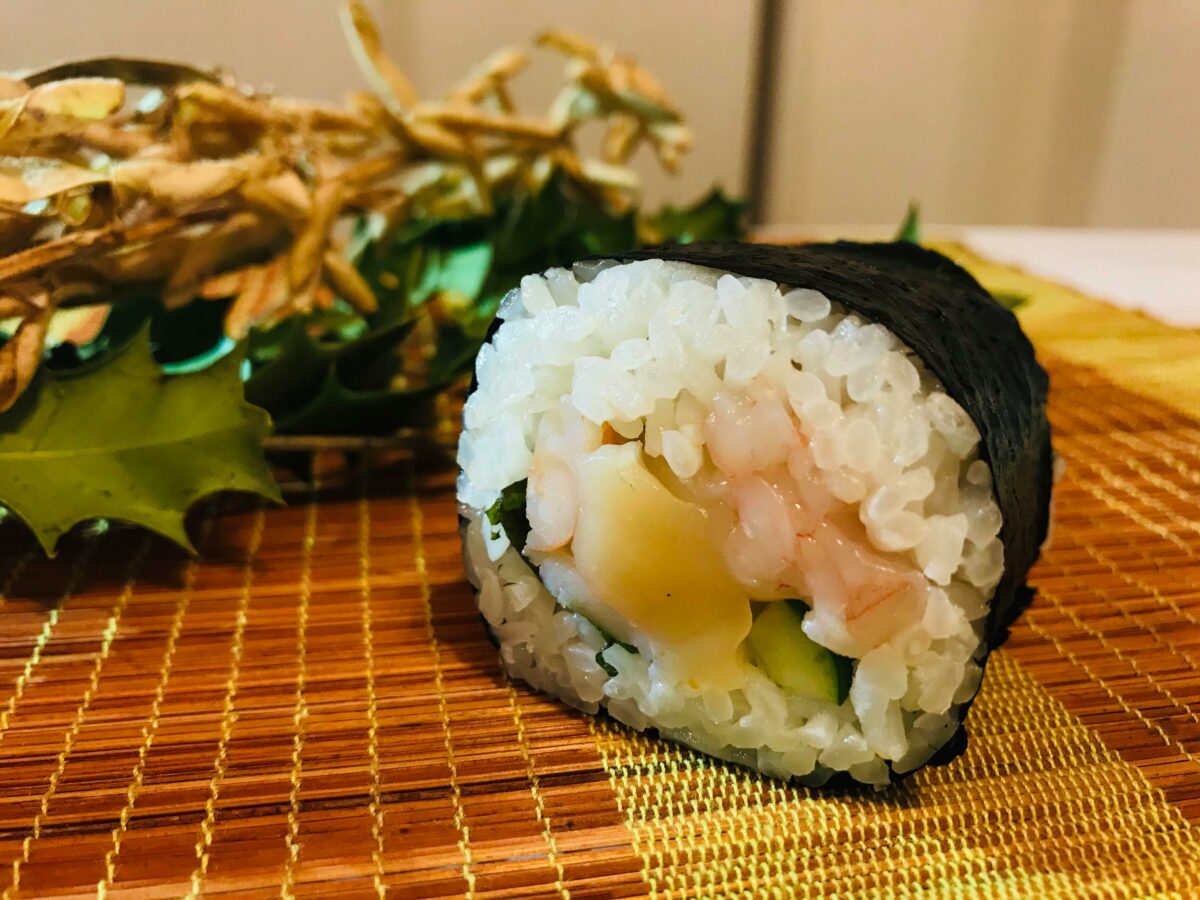 具材はほたて貝柱、甘えび、えび、きゅうり、大葉の4種類!プリプリ感が写真からも伝わってきます。