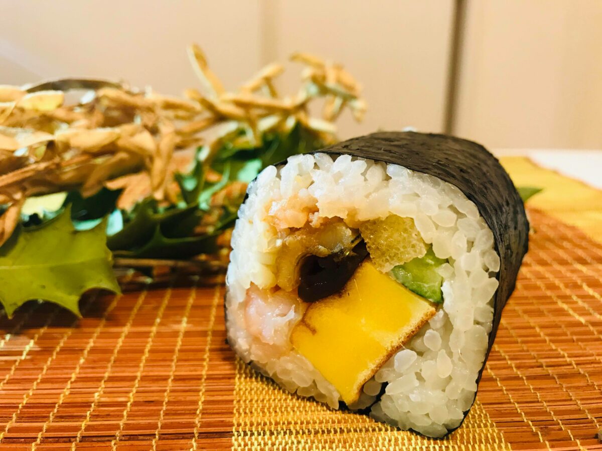 最後にご紹介するのは、煮穴子の入った恵方巻。にんじん、かんぴょう、ごぼう、しいたけが入っており、和なテイストです!