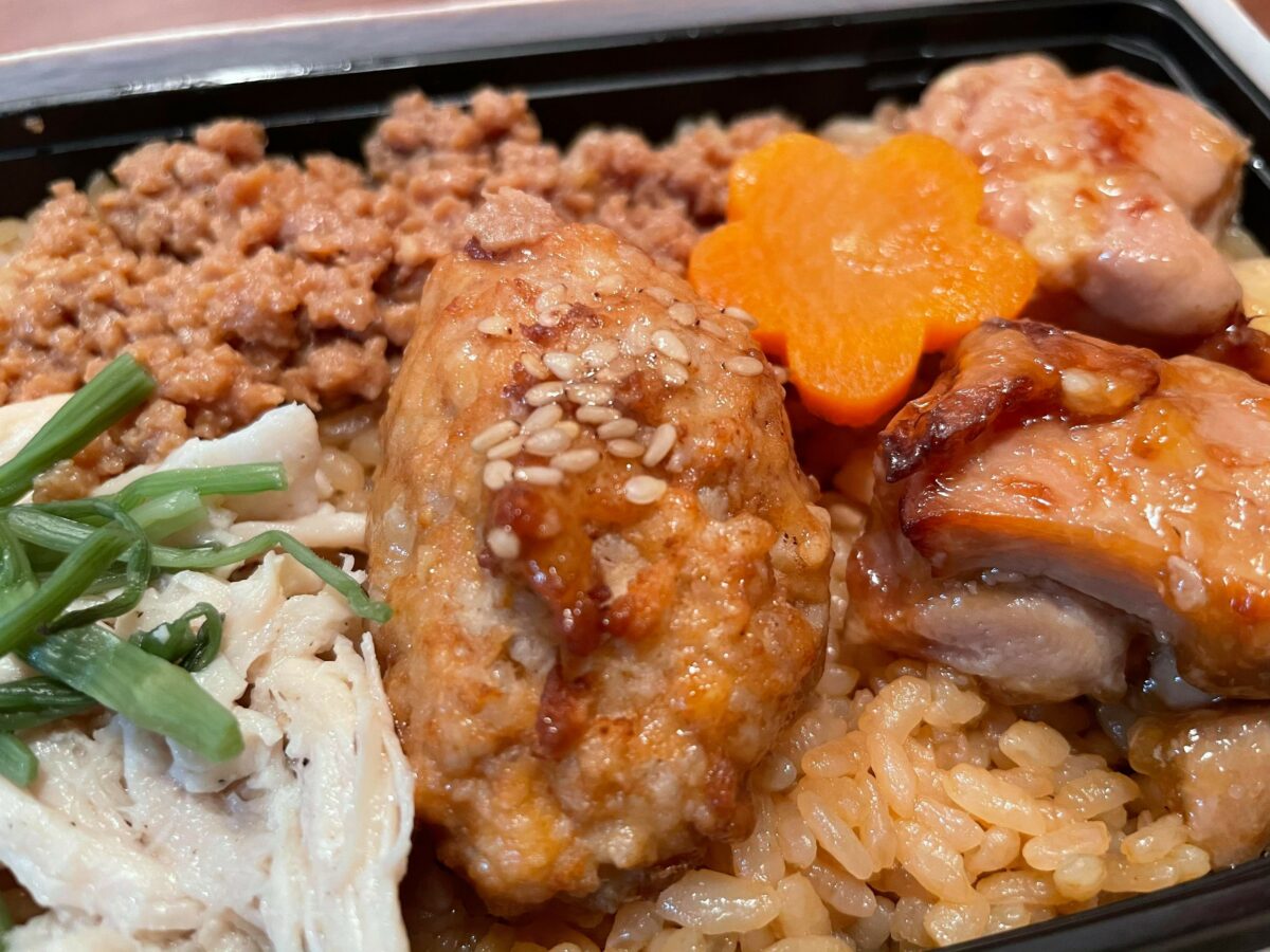 ご飯に全部タレが染みてるのが素晴らしい!濃い味付けのそぼろに、さっぱりした鶏ほぐし。定番の鶏照り焼きに、歯ごたえのあるつくねで4種それぞれの鶏が楽しめるので飽きない。(30代男性 デザイナー)