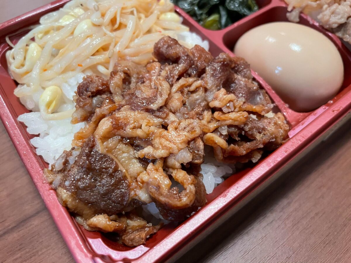 メインのお肉だけでなく、付け合わせもこれまた乙なツマミが入ってるんだなぁ。味付けたまごやもやし・小松菜ナムルは絶対ビールに合う!