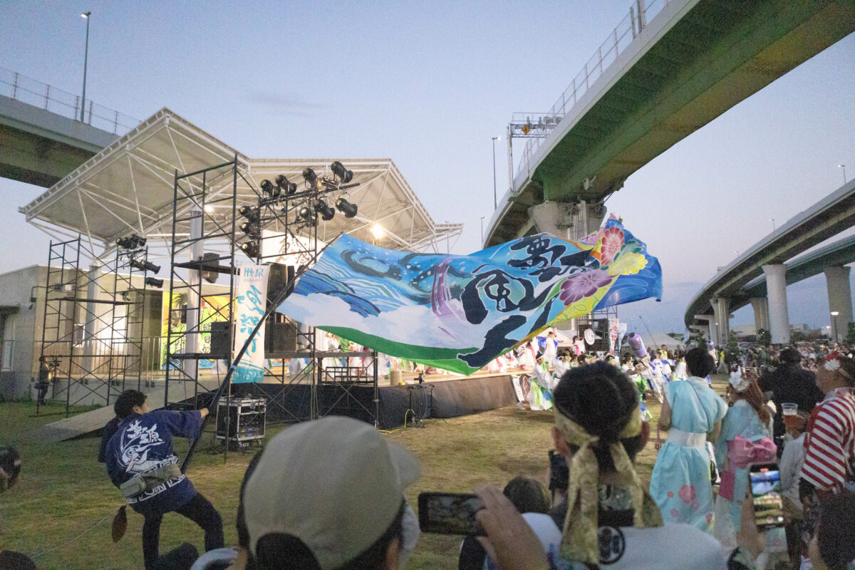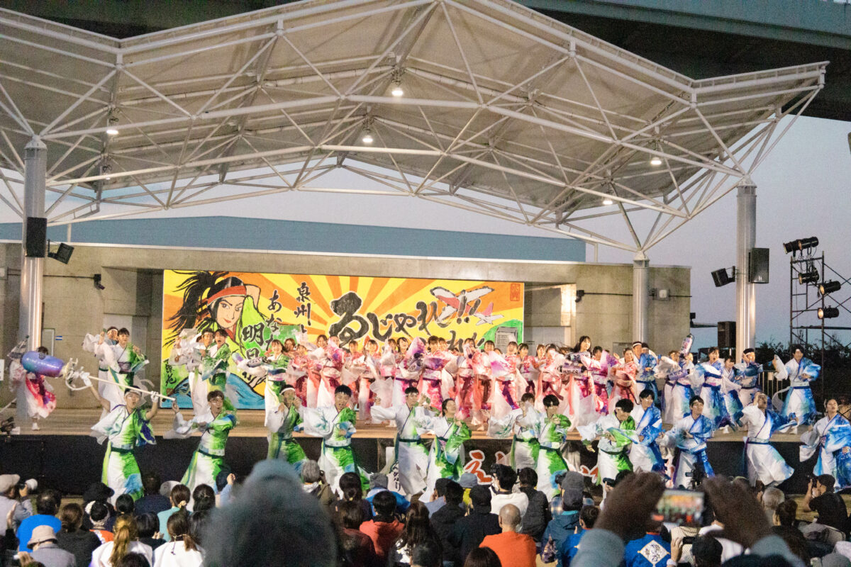 海上の人口島へ続く連絡橋のたもとで、毎年秋に「泉州YOSAKOIゑぇじゃないか祭り」が開催されています。今年で19回目の開催、参加チームは95チームと大阪でも最大級のよさこいイベントです。