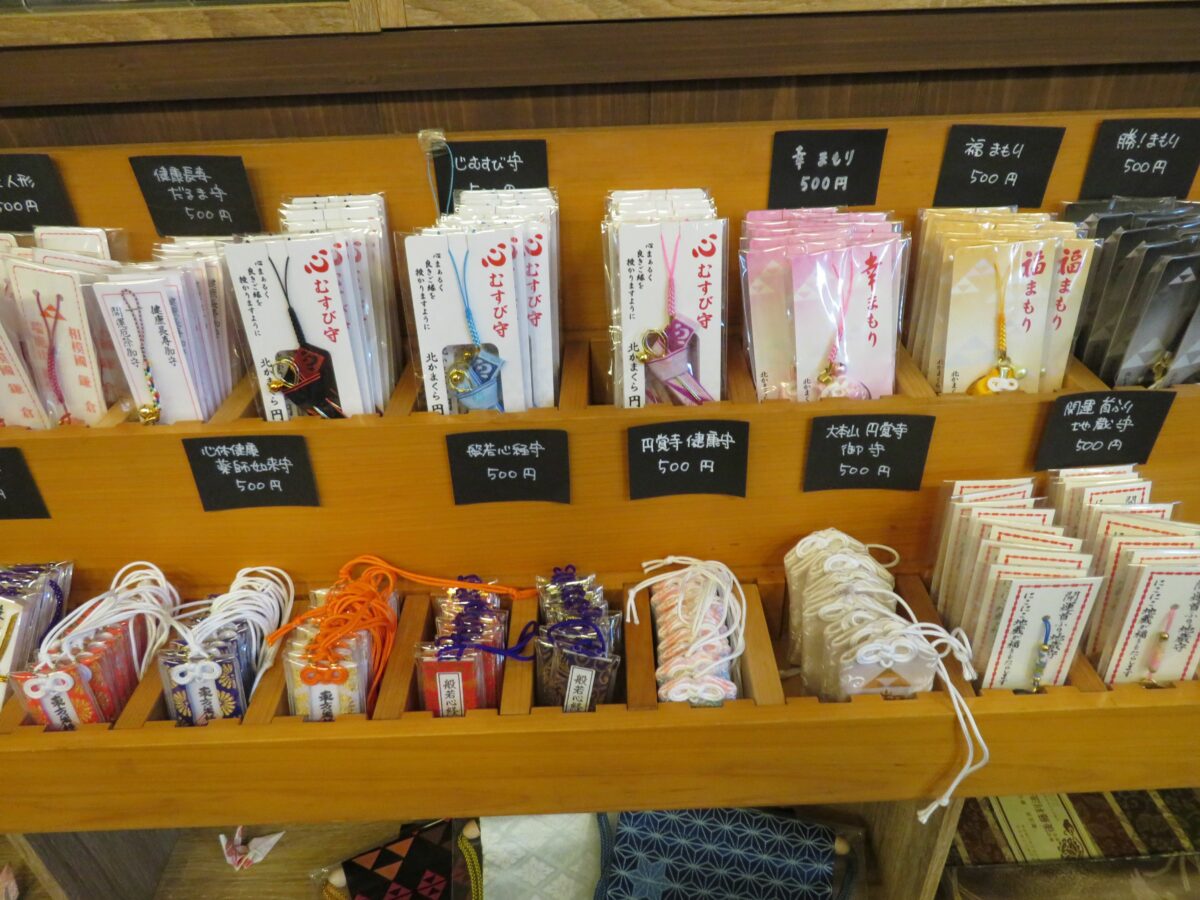円覚寺では総門に接するように御朱印所が設けられています。窓口では御朱印の他に、オリジナルの御朱印帳、御朱印袋、種類豊富なお守りや、お札などが準備されています。