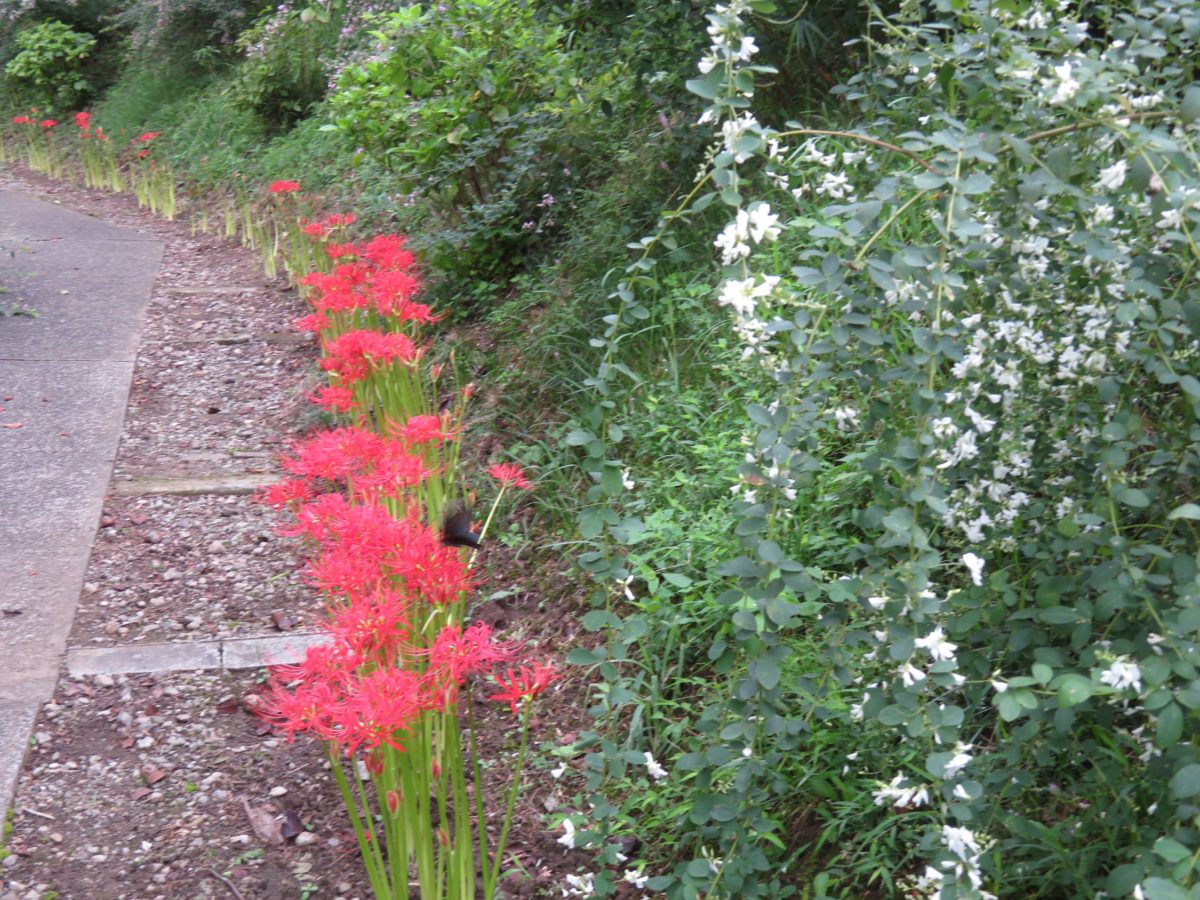境内の東側には、萩の花と彼岸花が並んで咲くエリアもあります。
