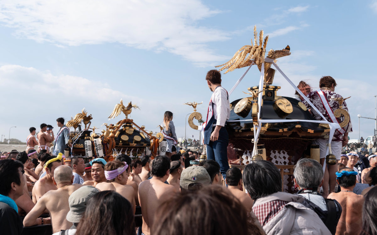 神輿の上で堂々と掛け声を上げたり、海に入って皆と神輿を担いだり、飛び切りの笑顔でそれぞれ楽しんでいたようでした。流石に終了後は寒さに震えあがっている新成人の姿もありましたが・・・