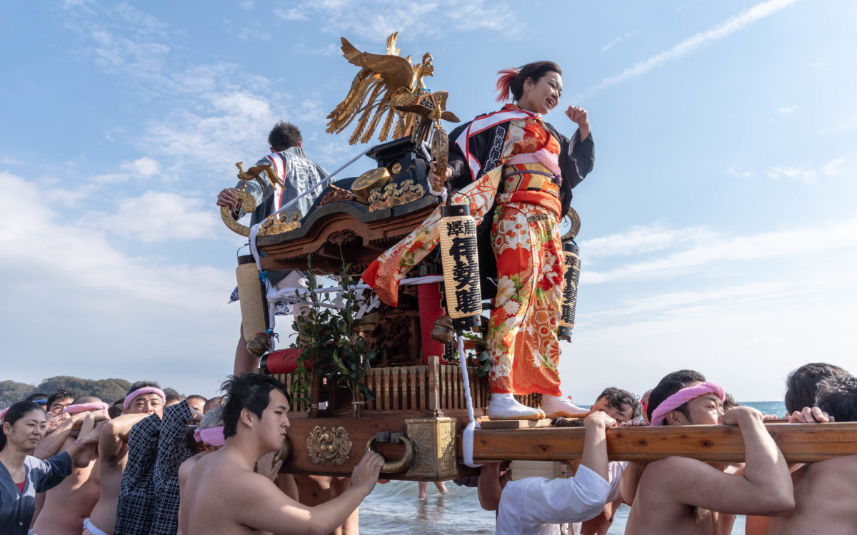 毎年成人式に近い日曜日、一年の神輿渡御の安全を祈願し、同時に新成人を祝う行事で、湘南江の島の新春恒例イベントとなっています!