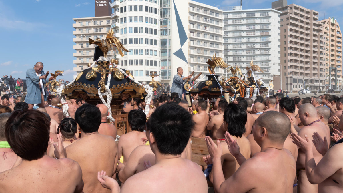 2019年1月20日、神奈川県下きっての観光地、江の島海岸に褌姿の男衆が集結しました。