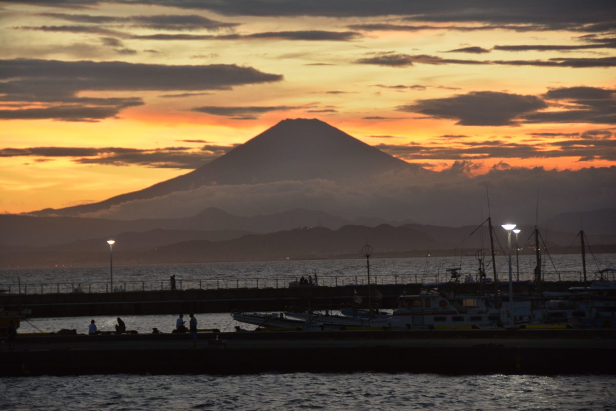 江の島の島内に設置された約1000基の灯篭に灯が点されるのは、西の空で富士山が夕陽に染まる18:30前後です。
