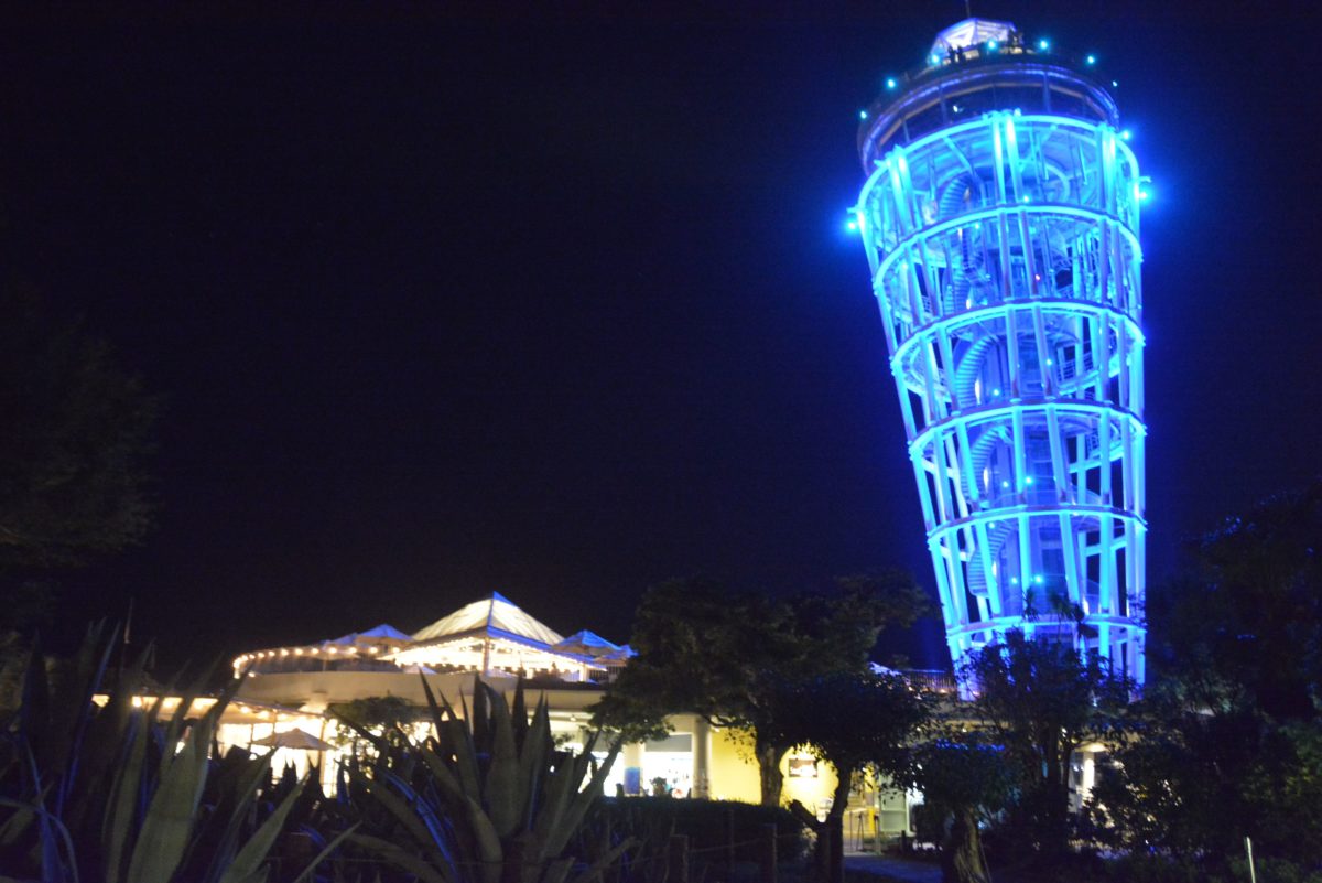 江島神社の中津宮と奥津宮を繋ぐ参道から眺めるサムエル・コッキング苑のシーキャンドル