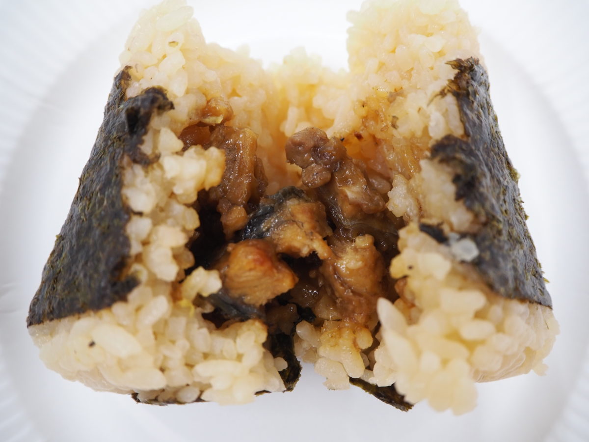 「うなぎめしおむすび」の袋を開けてみると、入っているのは一見普通の味付きご飯のおにぎりですが…