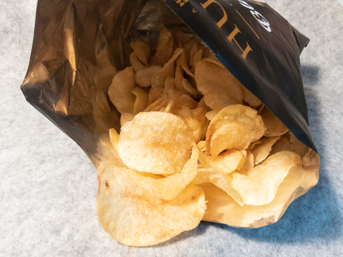 1品目は、アラブ首長国連邦原産のポテトチップス。125gで422円と高価なポテトチップスですが、成城石井の人気商品のようです。高級感のある黒と金色のパッケージが特徴。