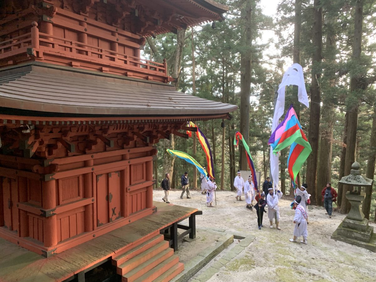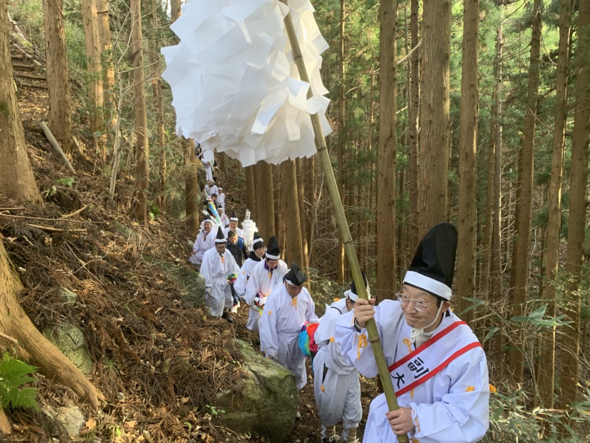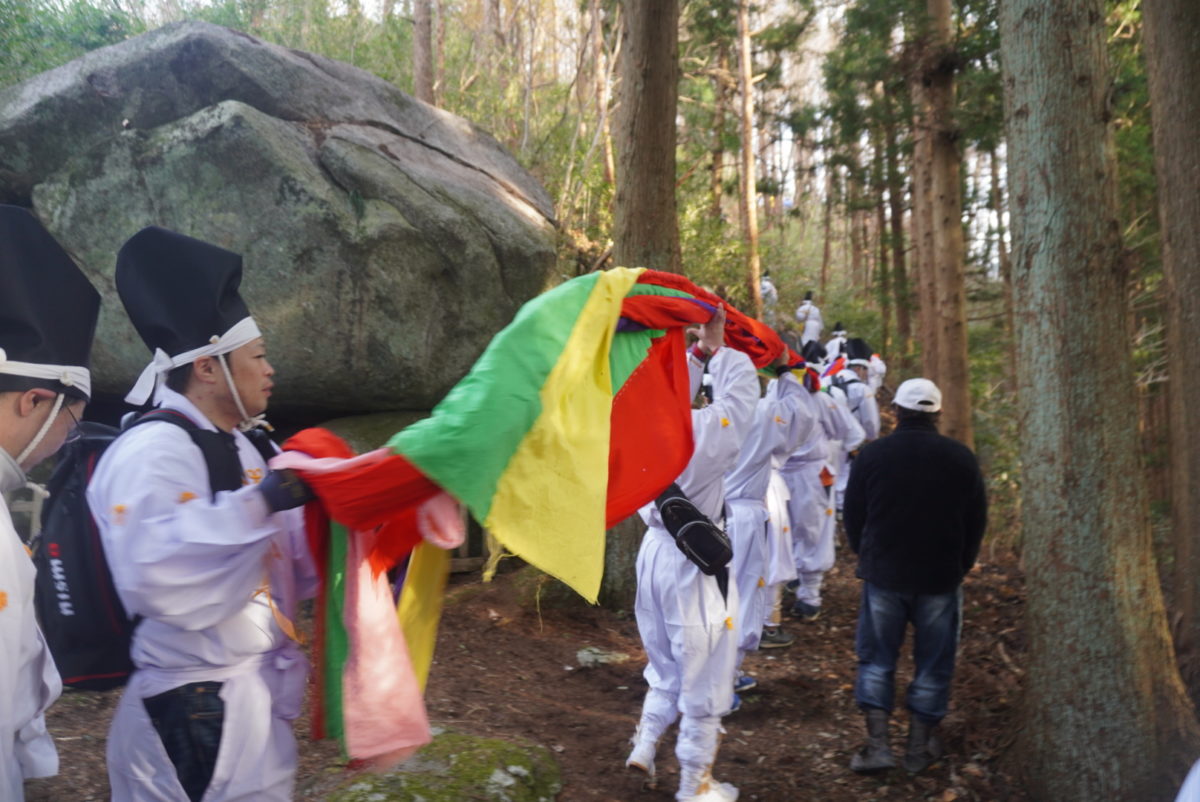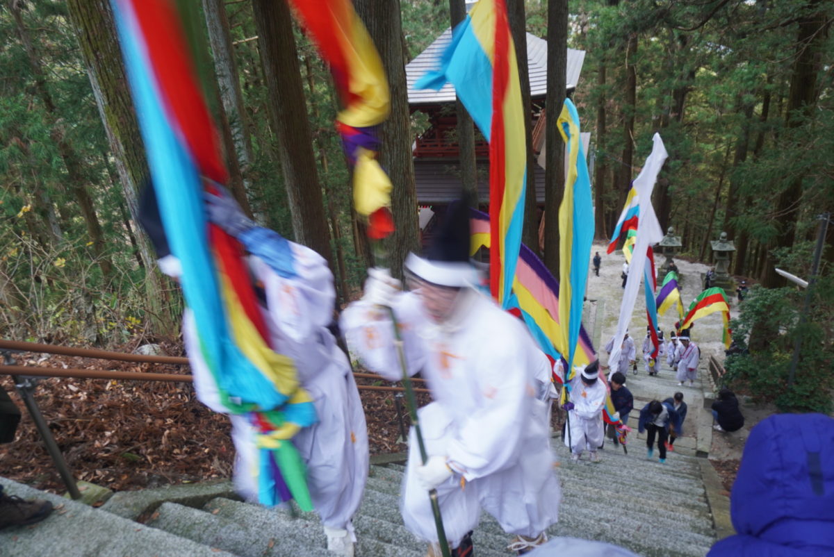 いかがでしたか? 今回の「木幡の幡祭り」。900年前、「雪を被った木々を敵軍が白旗の軍勢と見間違えた」という例の劇的ビフォーアフター。あれも真偽のほどはともかく、霊山を神格化するためのエピソードだったのでしょうね、きっと。2万歩以上、山の中を歩き周った今だからこそしみじみと実感できます。山の祭りは深淵です。
