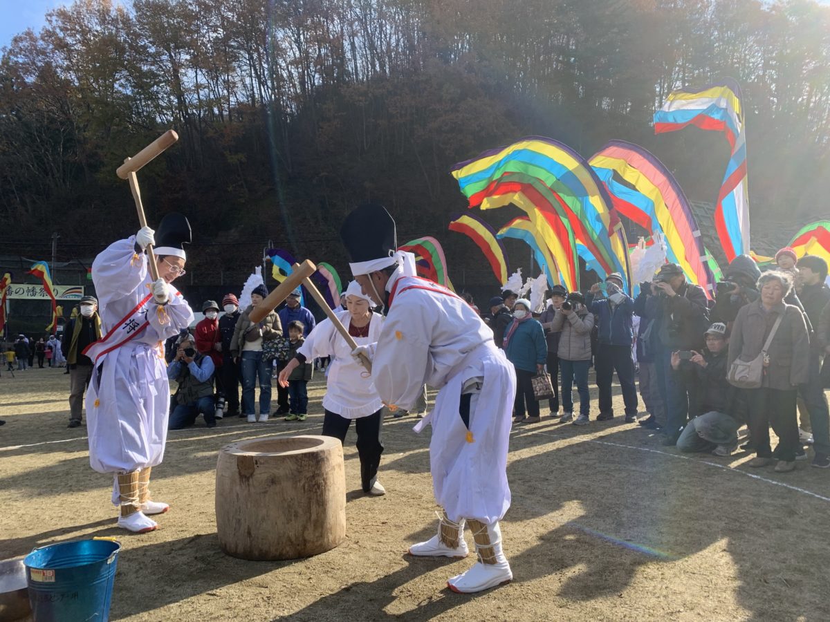 ……からの餅つき。この後、いよいよ午前中のハイライトとなる「幡競争」です。