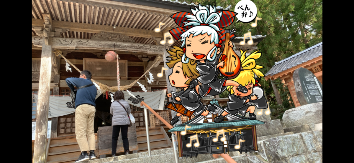 さて、山の麓に隠津島神社の第二社務所があります。山の上まで上がっていくのは大変ですから、お守りや御朱印はこちらで買えるようです。祀っているのは隠津島姫(おきつしまひめ)、田心姫(たごりひめ)、湍津姫(たきつひめ)の宗像三女神(※イラストは英語学習アプリ『英語物語』に出てくるキャラクター「宗像スリーピース」)。