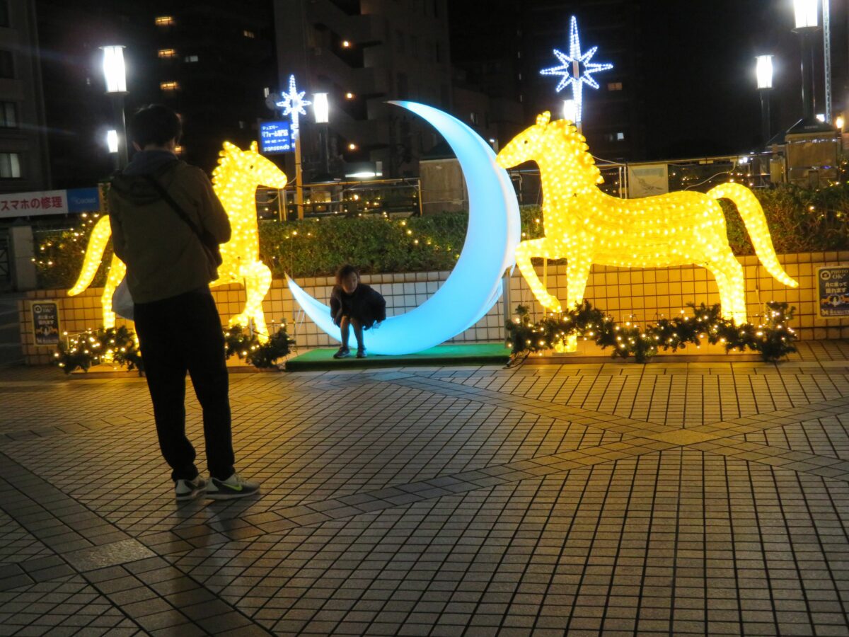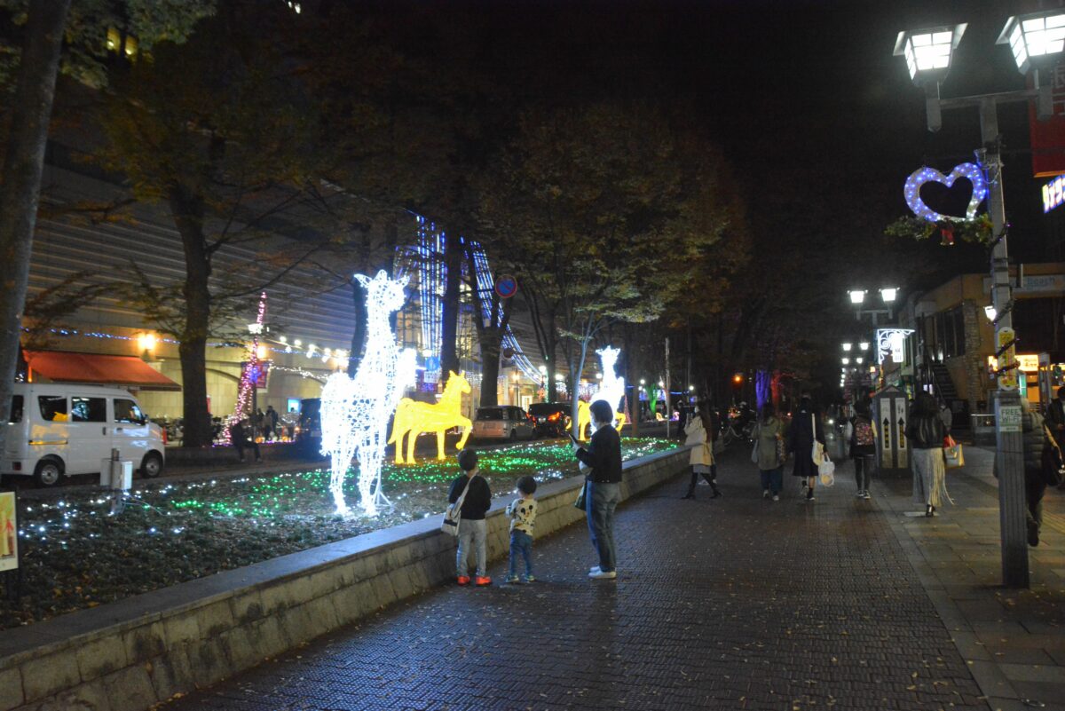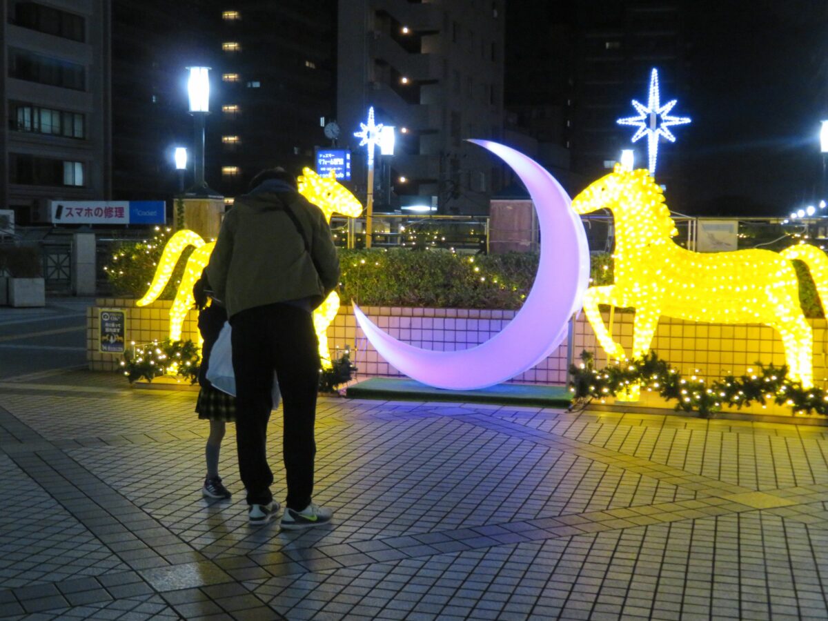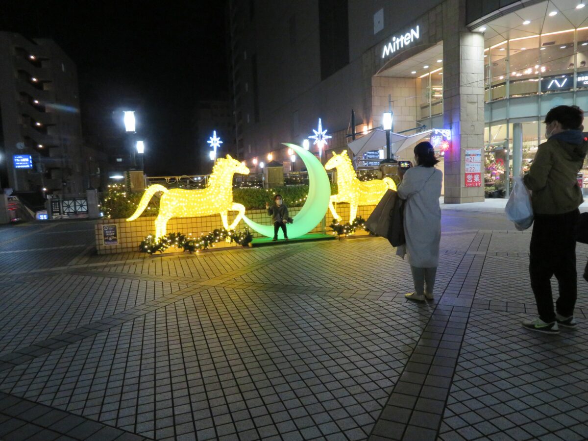 「けやき並木」では、江戸時代の安政年間頃まで馬市が立っていました。通りでは馬をモチーフにしたイルミネーションを数多く見ることができます。「ウマイルでスマイル」となることでしょう。