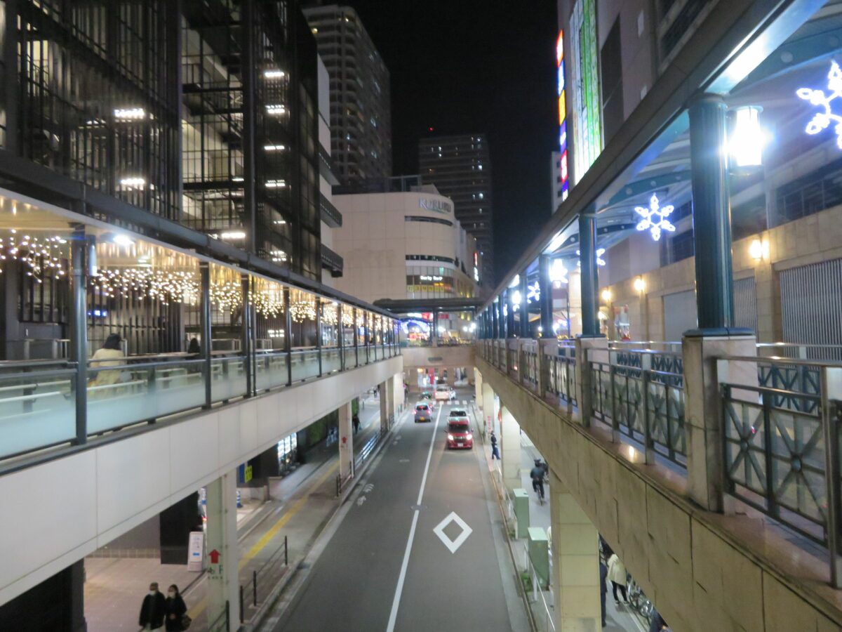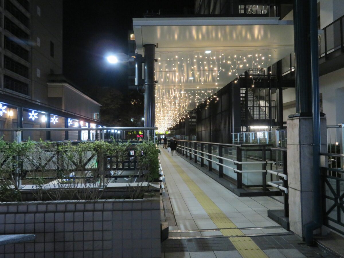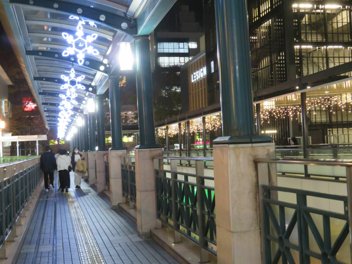「けやき並木」東側のスカイナードでも、府中駅南口に向かうペデストリアンデッキが光り輝きます。