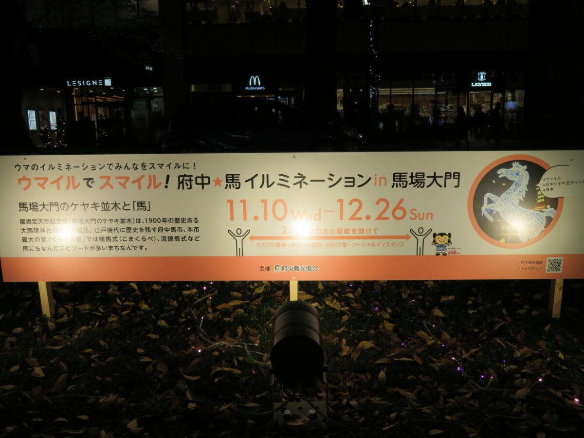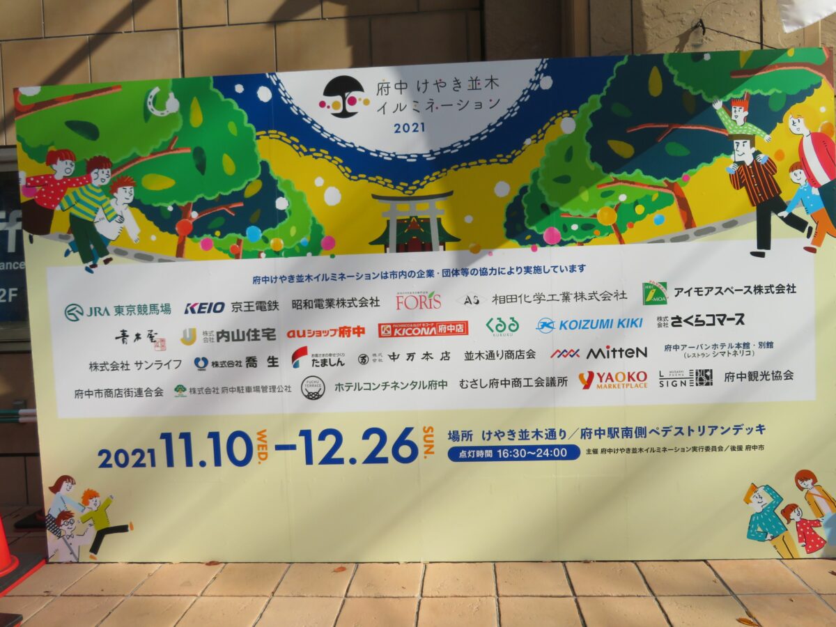 2021年の「府中けやき並木イルミネーション」の案内ボード