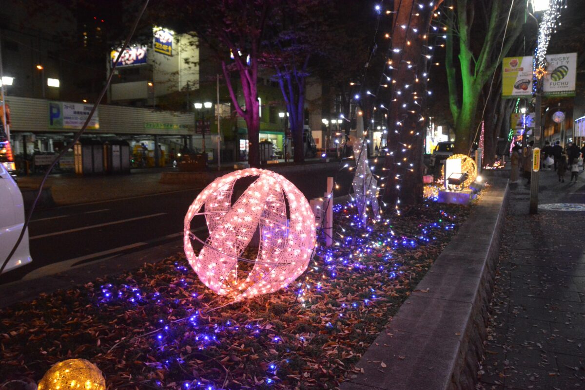 2021年には府中スカイナードの装飾が一新され、座った状態で写真が撮れるイルミネーションが設置されています。時間とともに彩りを変え、インスタ映え間違いなしです。