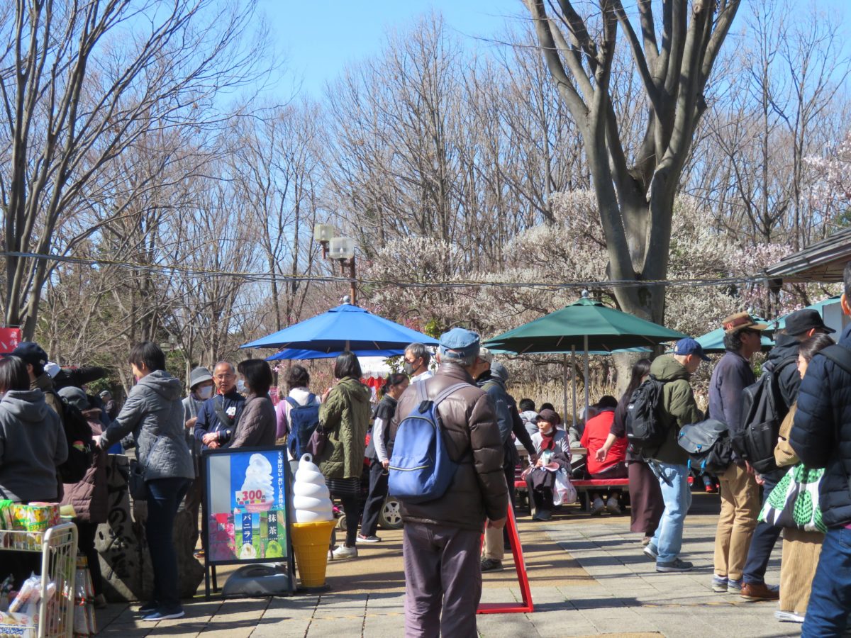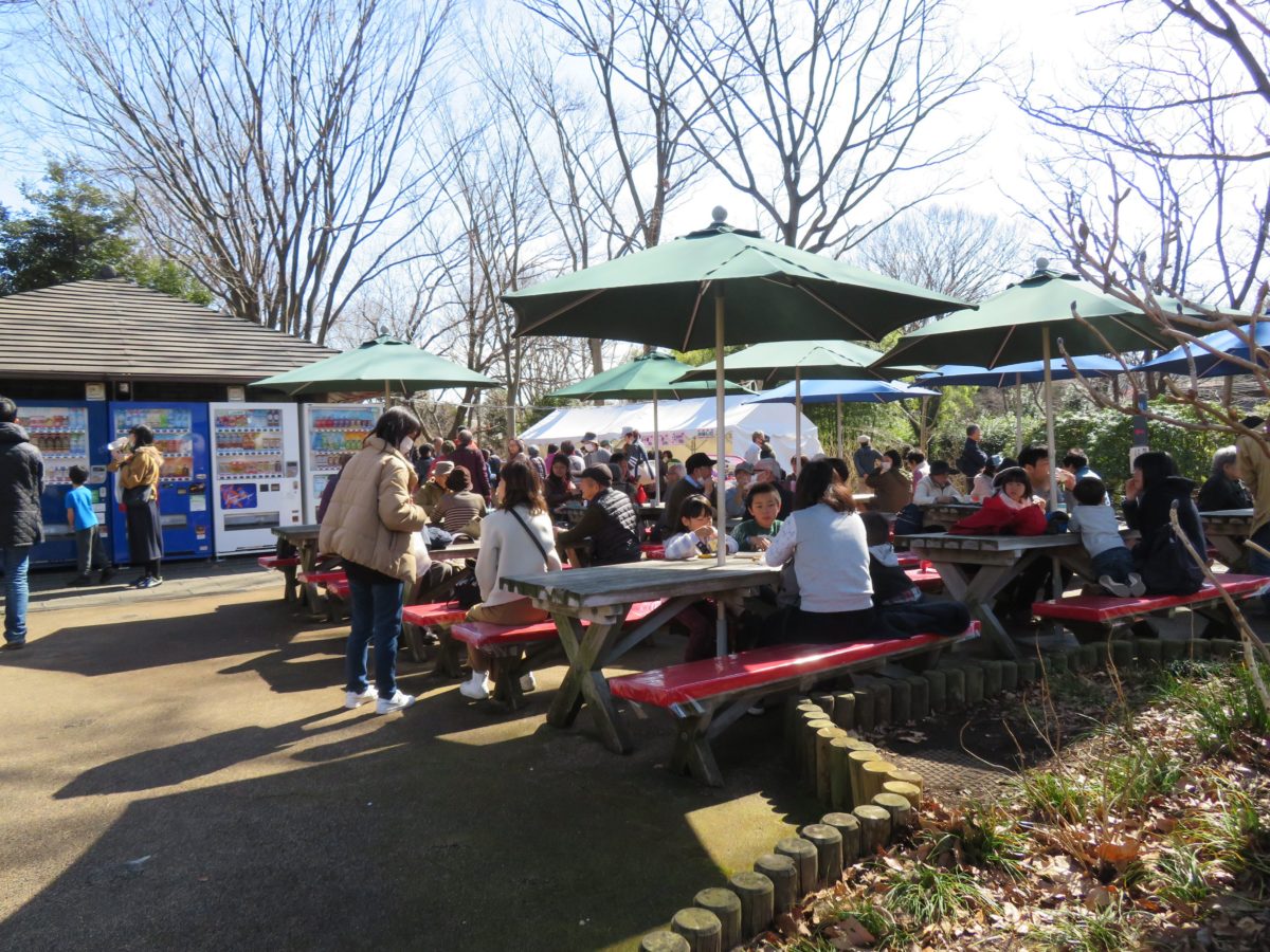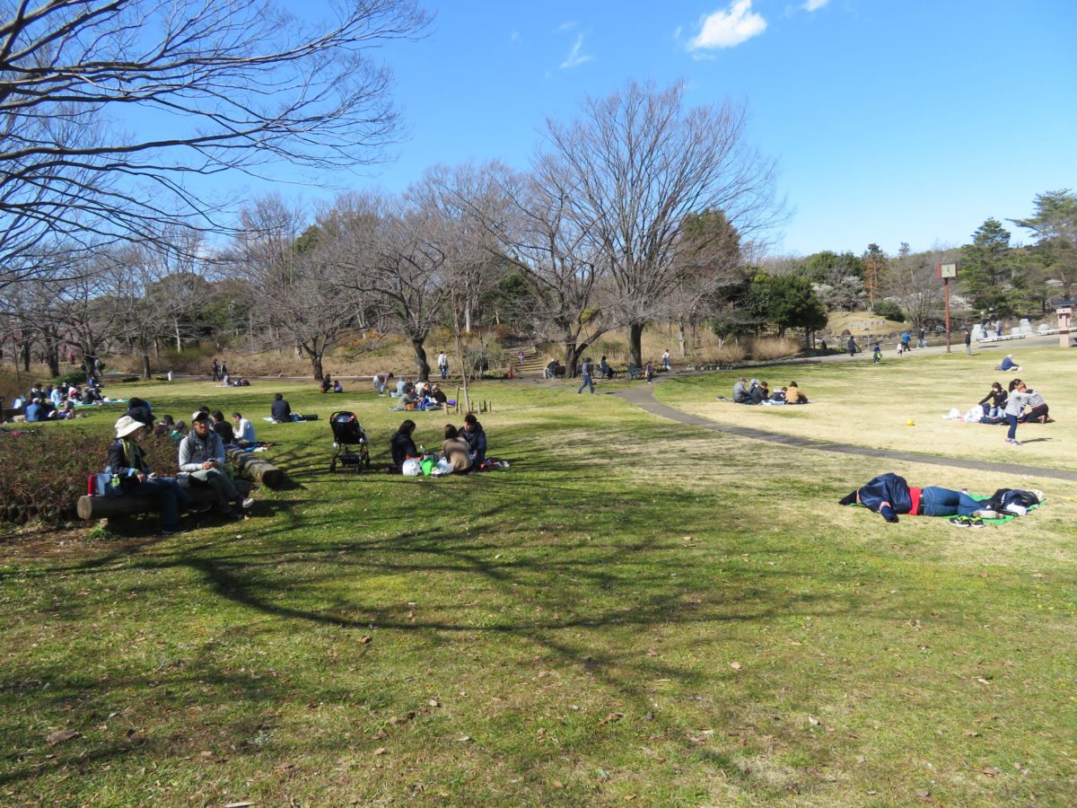 郷土の森博物館の敷地内の南東部には野外ステージが設置されており、ステージを芝生広場が囲んでいます。梅園からは少し離れてはいますが、シートを敷いてお弁当を広げる人も見かけられます。