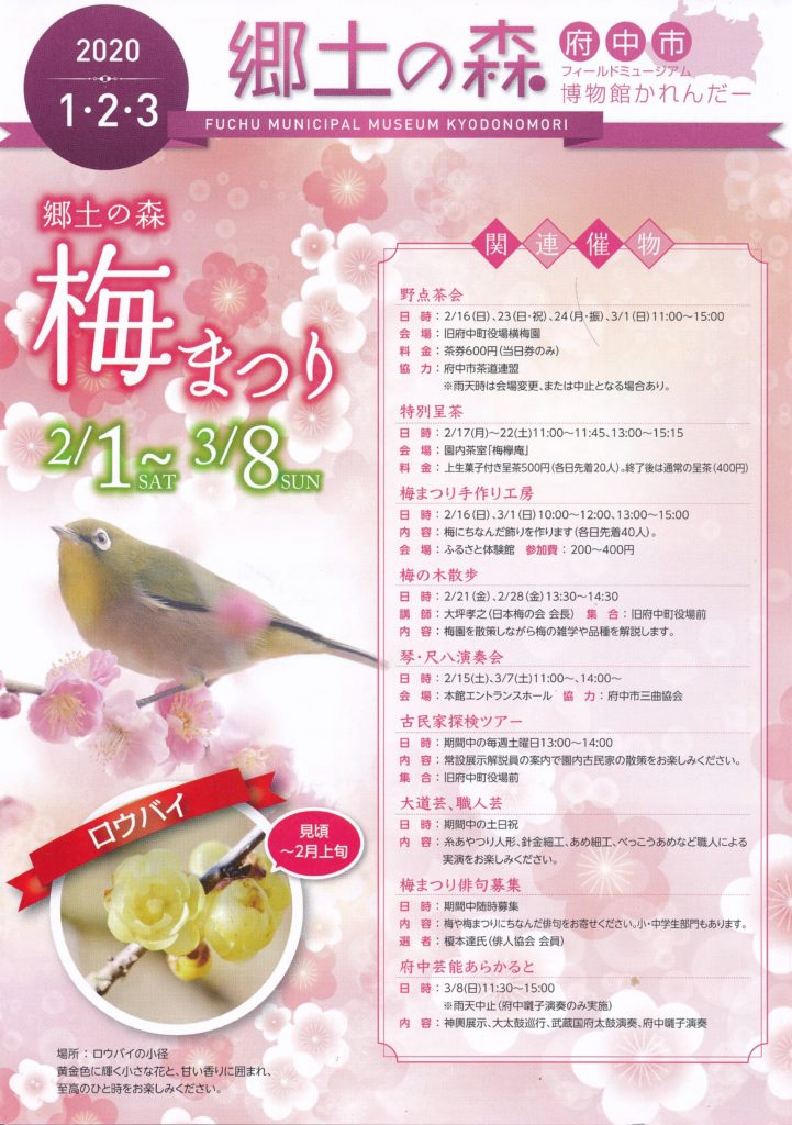 2020年の「郷土の森梅まつり」のチラシのイベント案内