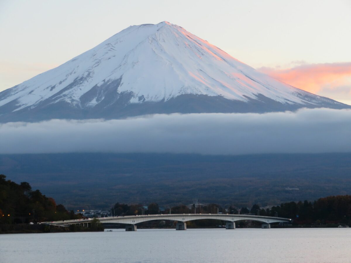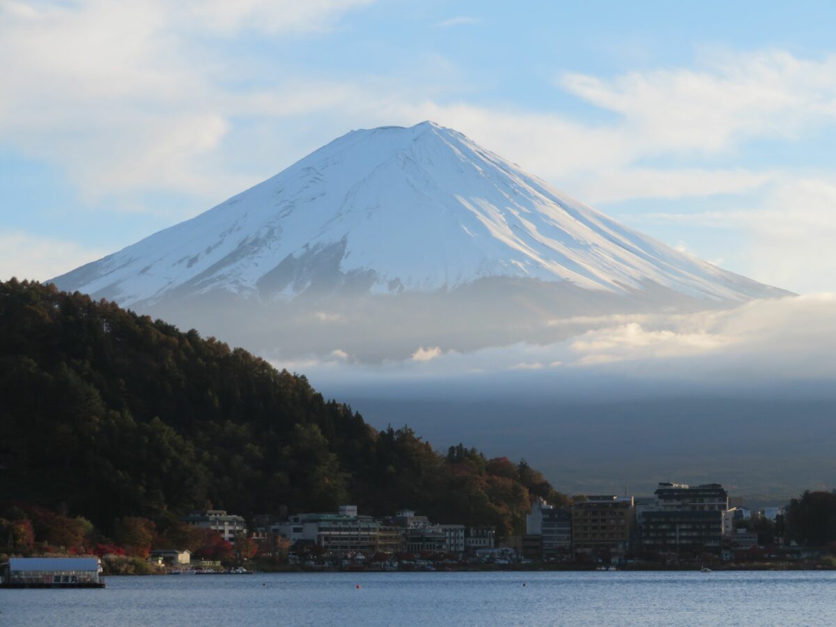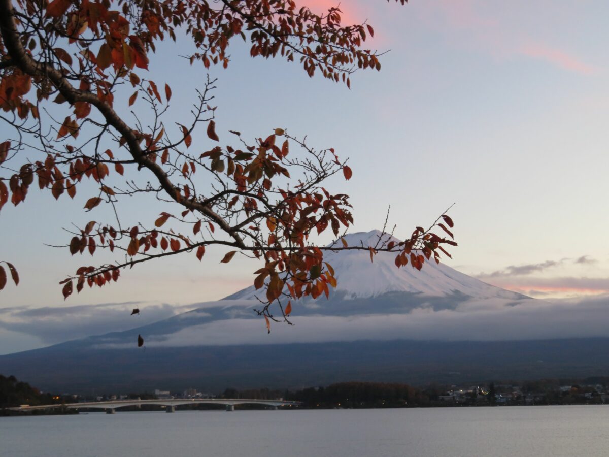 日本で最も高い山は富士山です。江戸時代中期の1707年の宝永大噴火以来、火山活動は行っていませんが、何度となく噴火を繰り返しました。山麓には5つの堰止湖が誕生し富士五湖と呼ばれています。この中で最も北に位置するのが河口湖です。河口湖の周辺は富士五湖の中でも、いち早く観光開発され一年を通して大勢の観光客が訪れています。四季折々の風景に恵まれ、例年10月下旬から11月下旬には紅葉で彩られ、「富士河口湖紅葉まつり」が開催されます。2021年は10月30日~11月23日の期間で行われています。