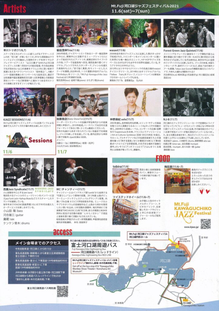 2021年の「Mt.Fuji河口湖ジャズフェスティバル」のチラシ