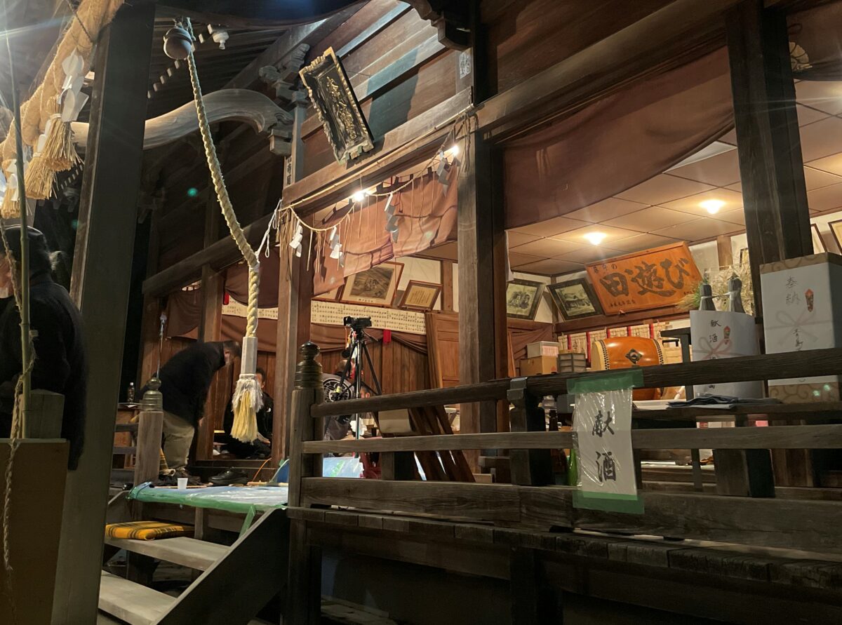 時に激しく跳ねたり、勇ましく足踏みしたり、繰り返す所作にもとても迫力がありました!舞台に上がる前には、一人一人「頑張れ!」と大人の方から声掛けがあったり、「声出せ~」と激励が飛ぶ神事は、地元に残るコミュニティとして最高の場だと感じました。